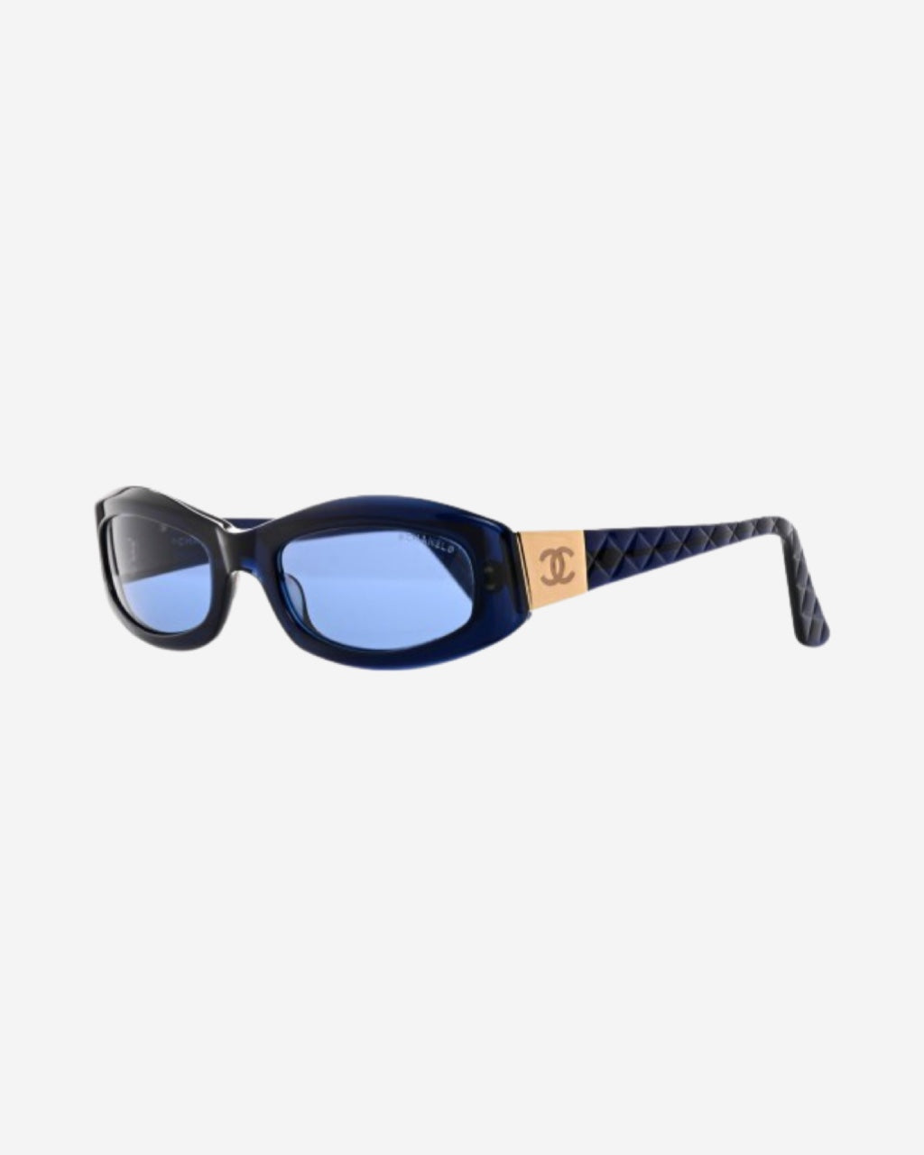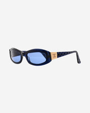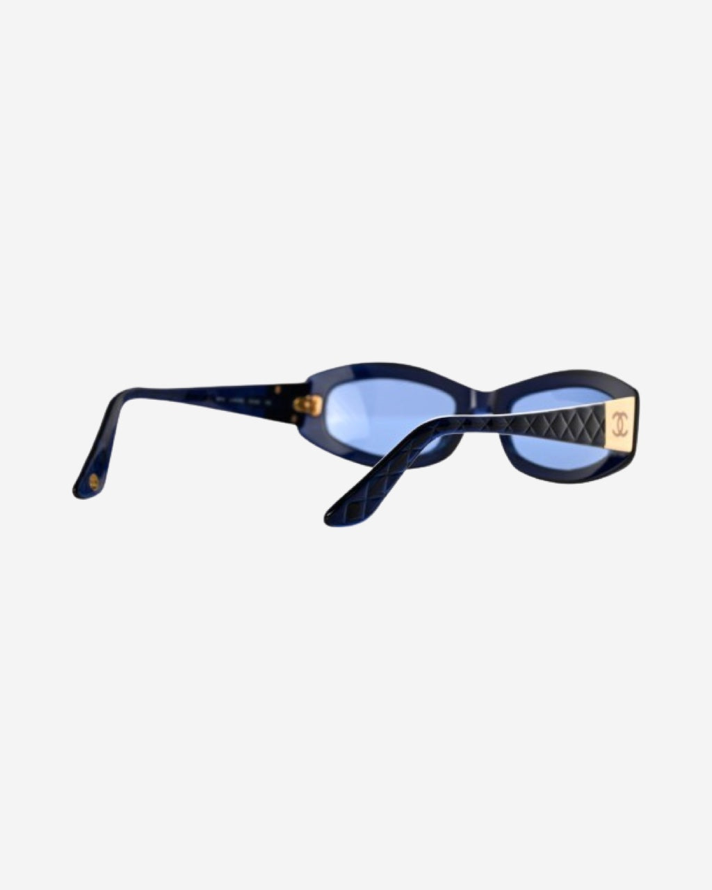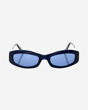 • Descripción: Lentes de sol Vintage Rectangulares, el lente es azul oscuro y el cuerpo es color negro con detalles en dorado