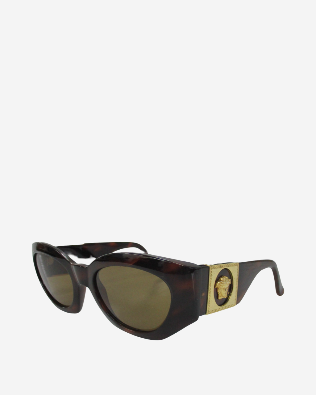 - Descripción: Lentes de sol Versace en acetato efecto carey, placa metálica de medusa en los laterales, logo grabado en el interior, hardware en tono dorado