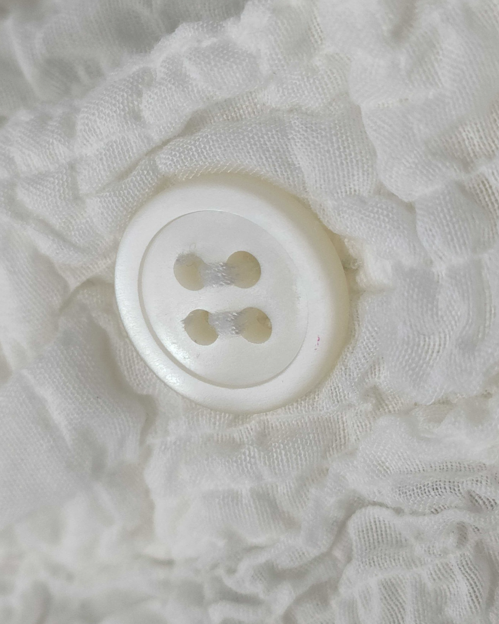 - Descripción: Top tipo cardigan en color blanco, cuello italiano, manga larga, bolsillos frontales