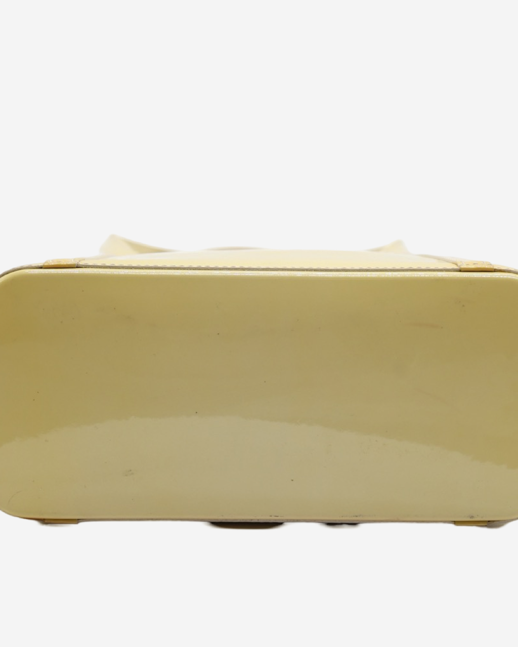 • Descripción: Bolsa de hombro en piel vernis caracterísica color amarillo, doble asa fija, interior en gamuza con bolisllo, hardware color dorado