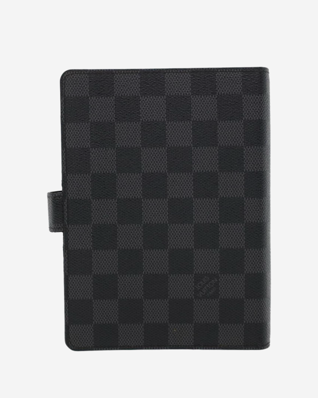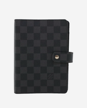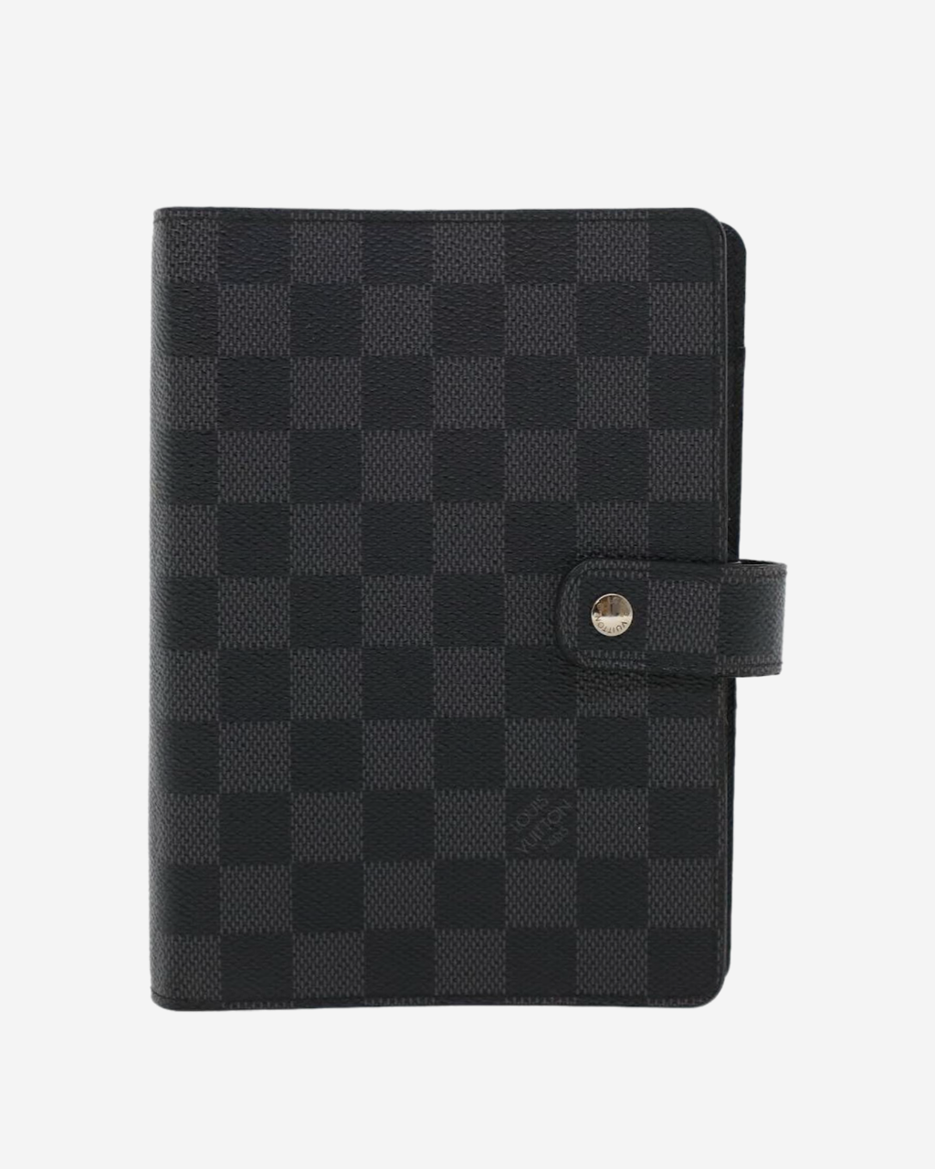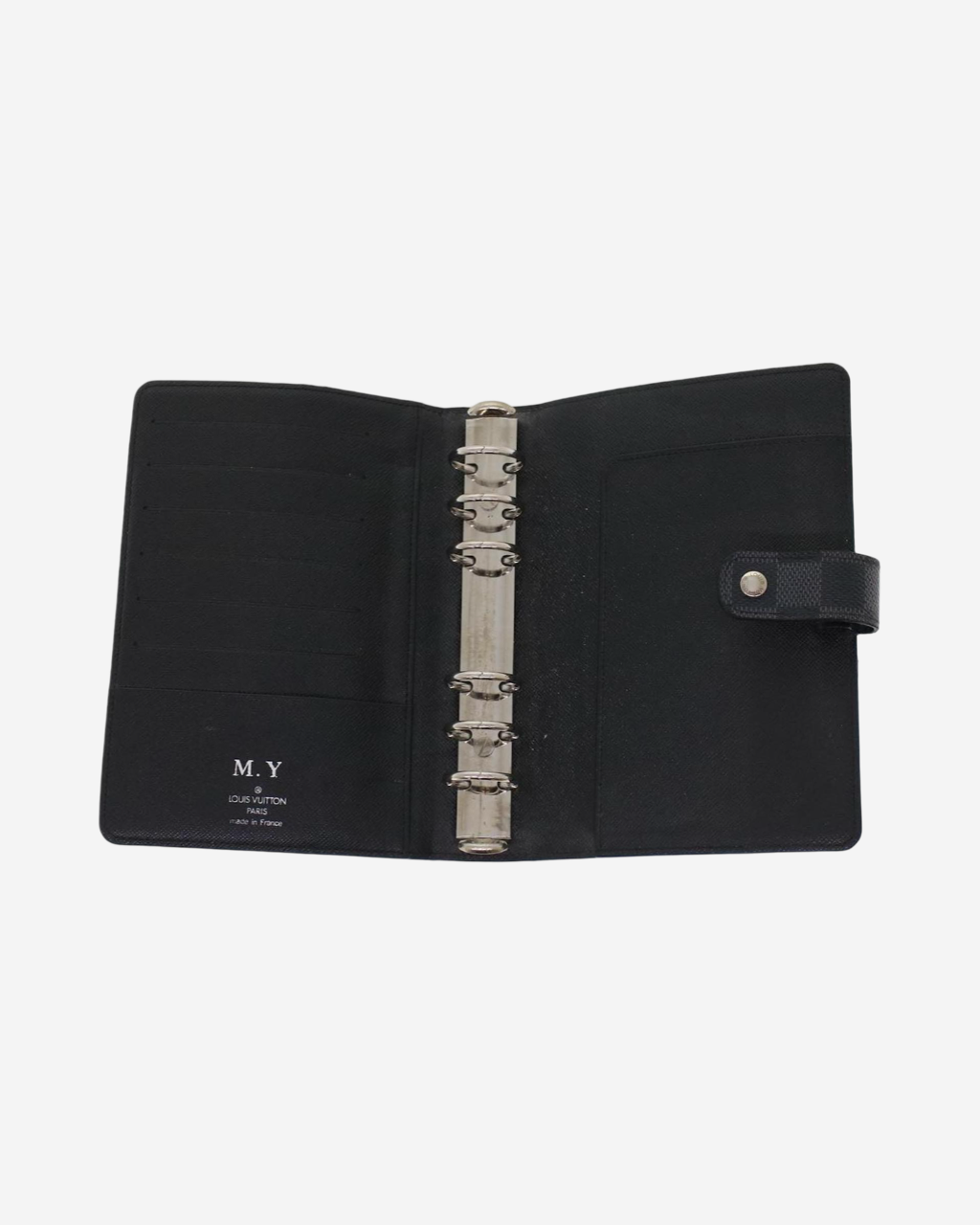 - Descripción: Agenda en canvas con broche frontal, broches redondos en el interior, compartmientos en los laterales