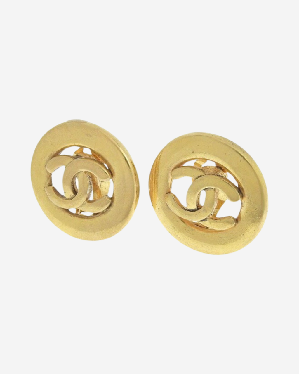 • Descripción: Aretes de clip Chanel, en baño de oro y logo CC entrelazado, diseño circular.