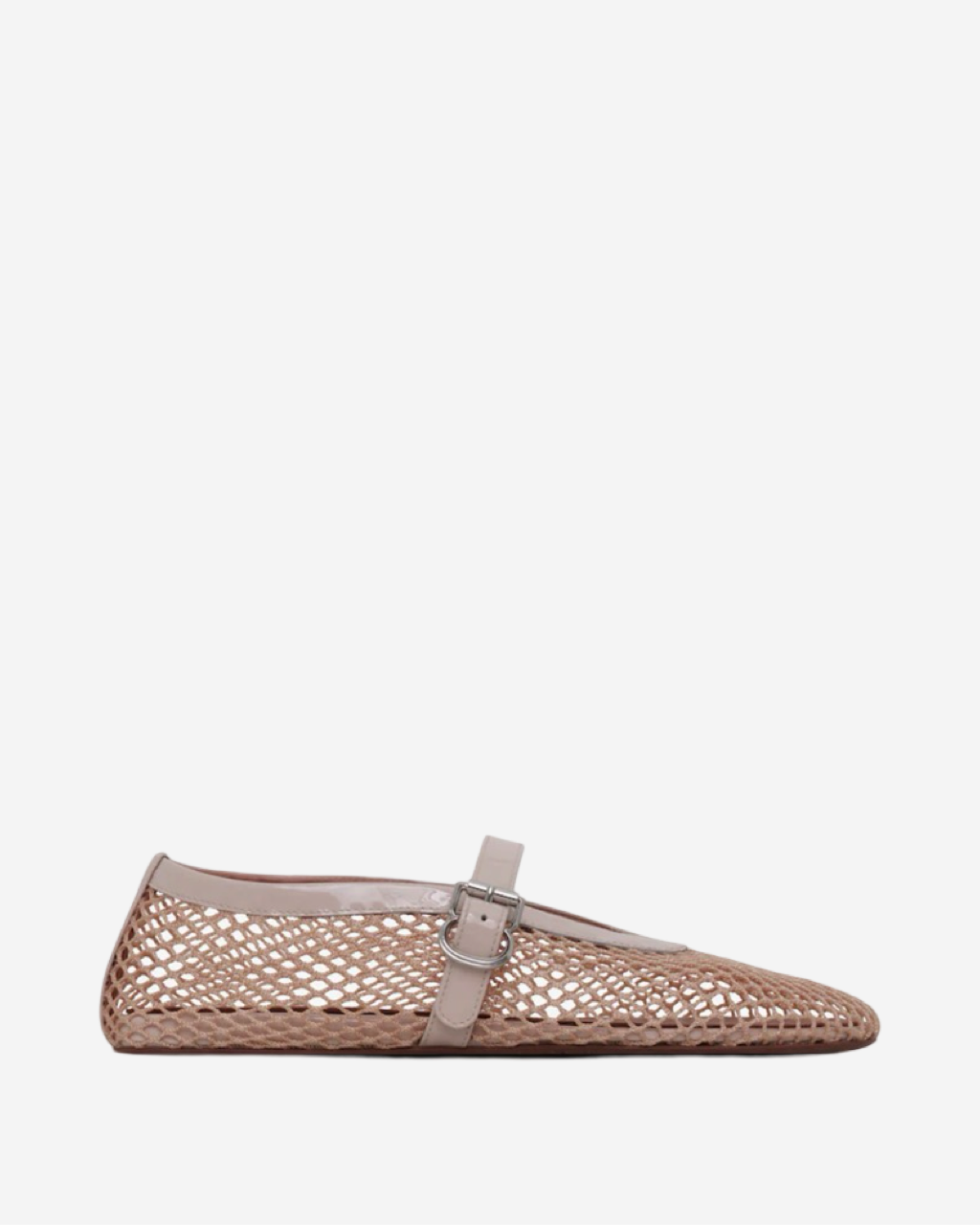 • Descripción: Ballet Flats en piel colo beige, con red, puntera redonda, ajuste con strap