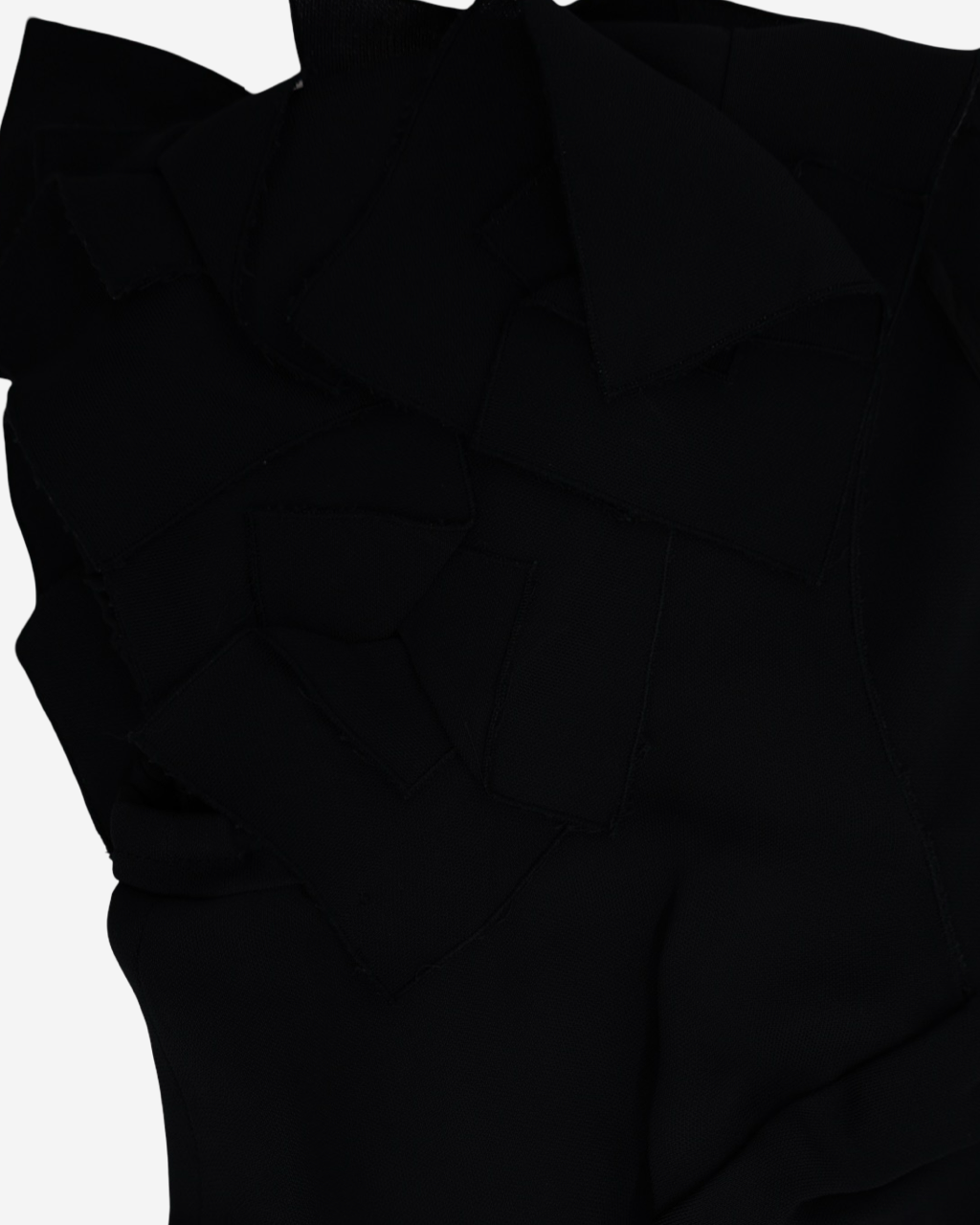 - Descripción: Blusa Prada en color negro, ajuste relaxed, manga corta, largo medio, cuello redondo, ajuste con zipper lateral, hardware en tono plateado