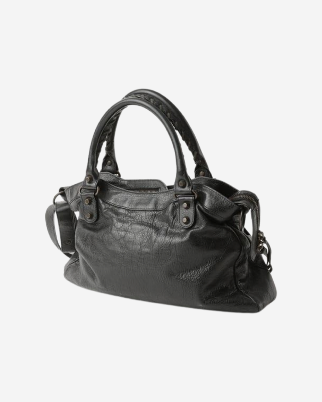 • Descripción: Bolsa de mano con dos asas en la parte superior y strap, compartimiento principal y cierre con cremallera.