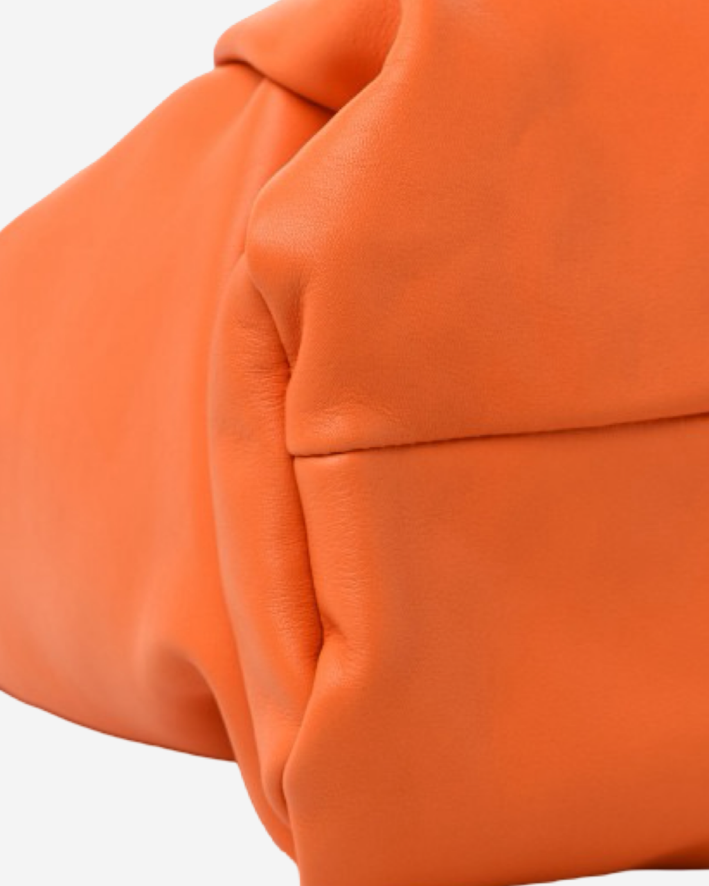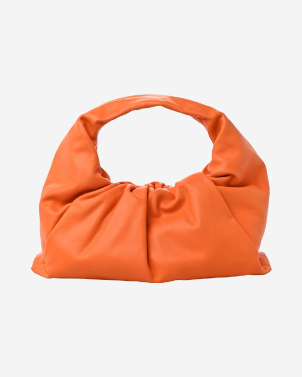 • Descripción: Bolsa de mano con detalle fruncido, asa en la parte superior, cierre magnético y compartimento principal