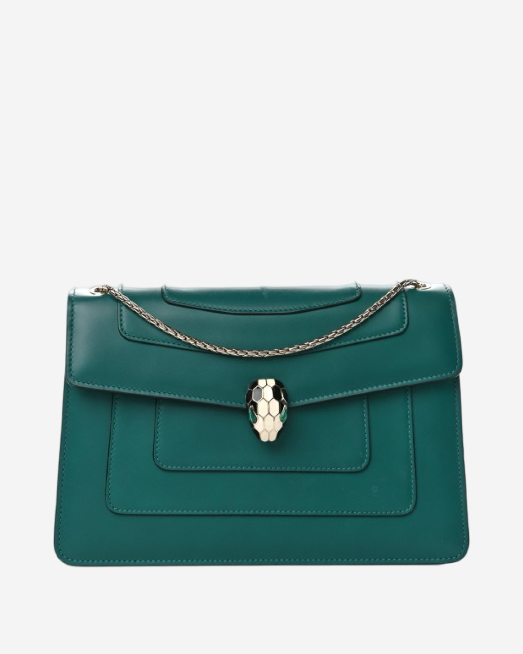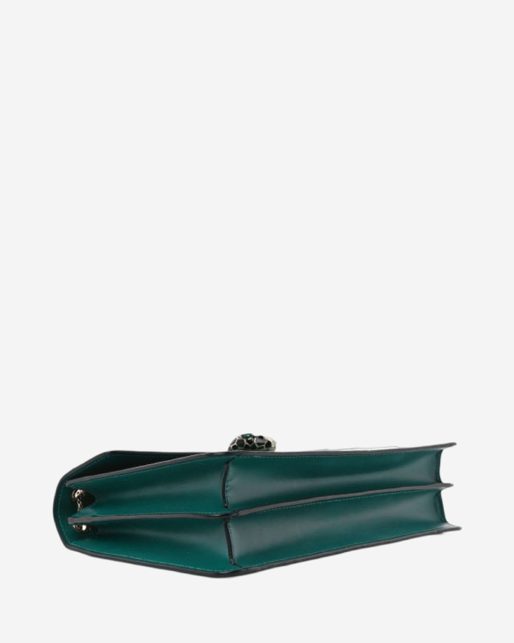 - Descripción: Bolsa cruzada, con asa movible, broche serpenti característico frontal, abertura con solapa, hardware color dorado