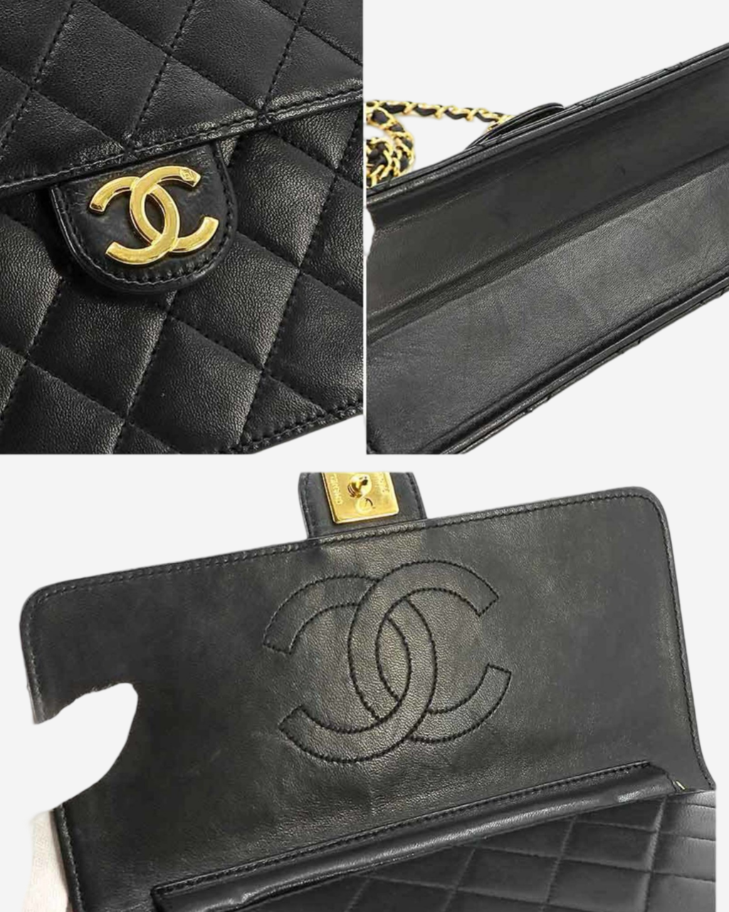 - Descripción: Bolsa de hombro en color negro, broche CC turnlock, interior en color vino, broche baño de oro 24k, hardware color dorado