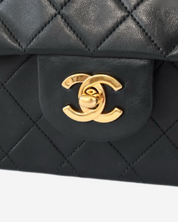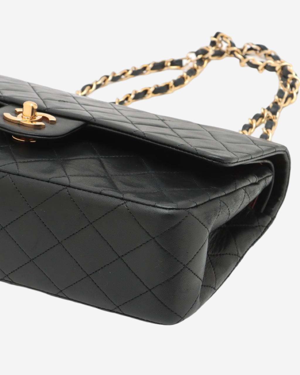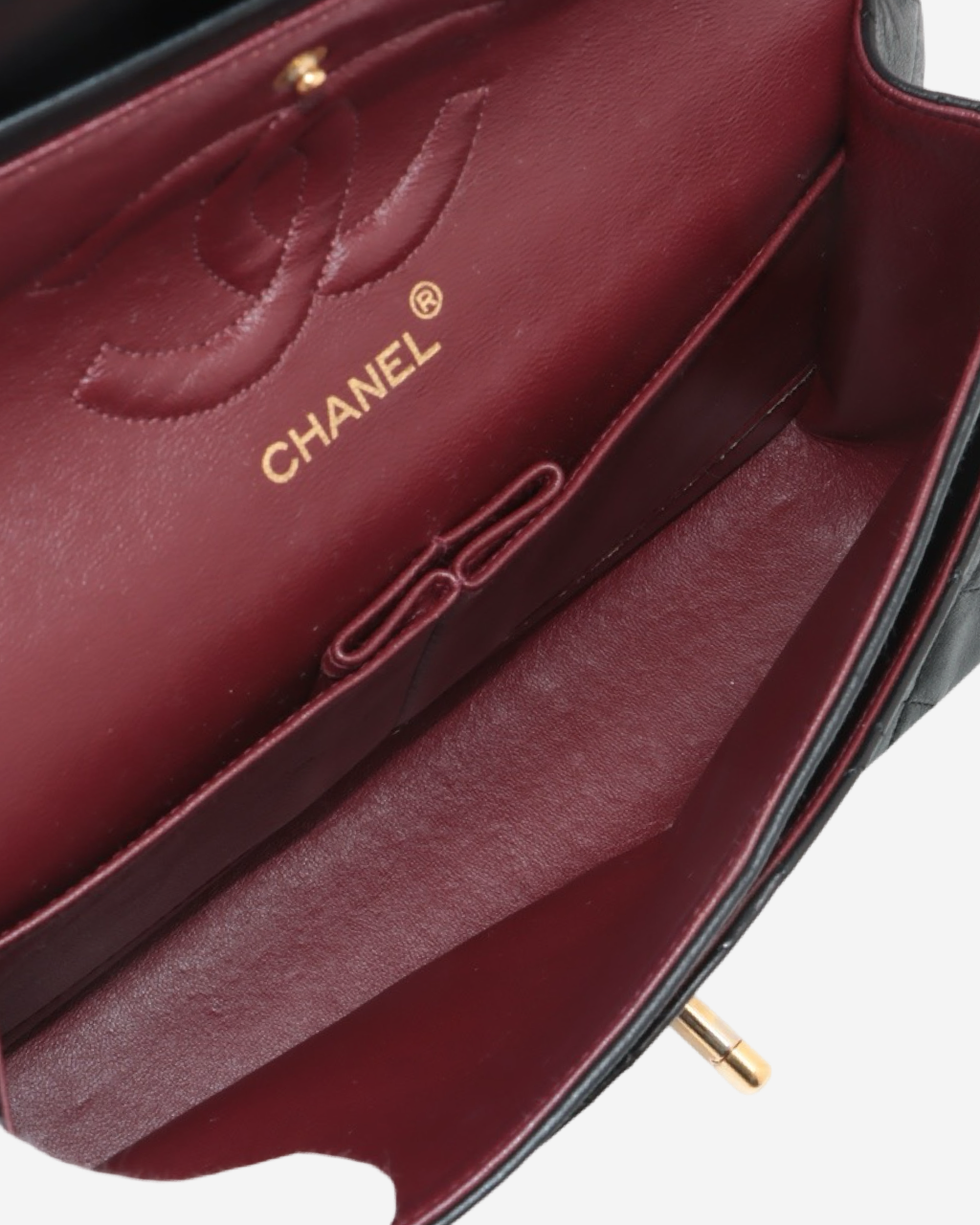 - Descripción: Bolsa de hombro en color negro, broche CC en baño de oro de 24k, interior en color vino, hardware color dorado
