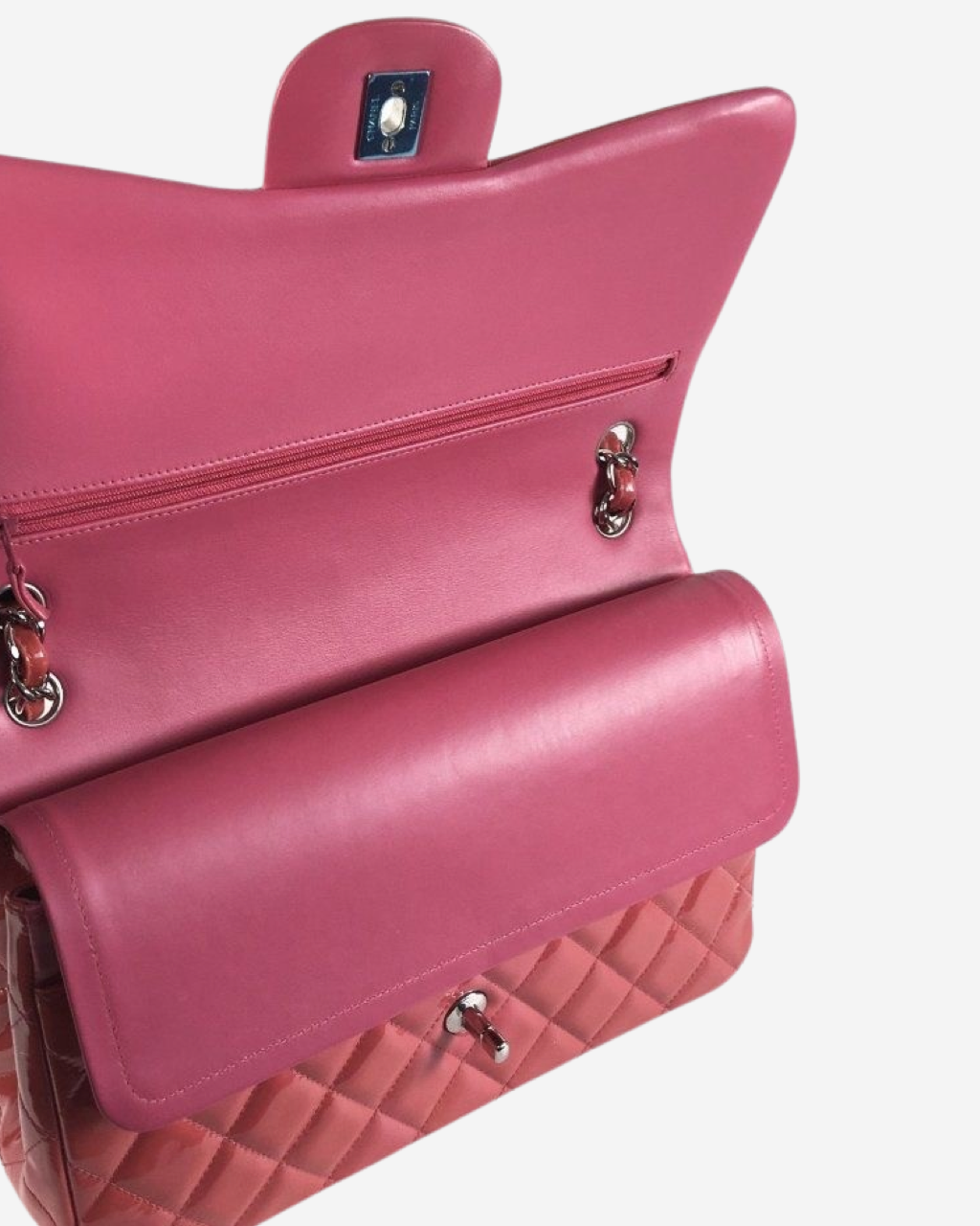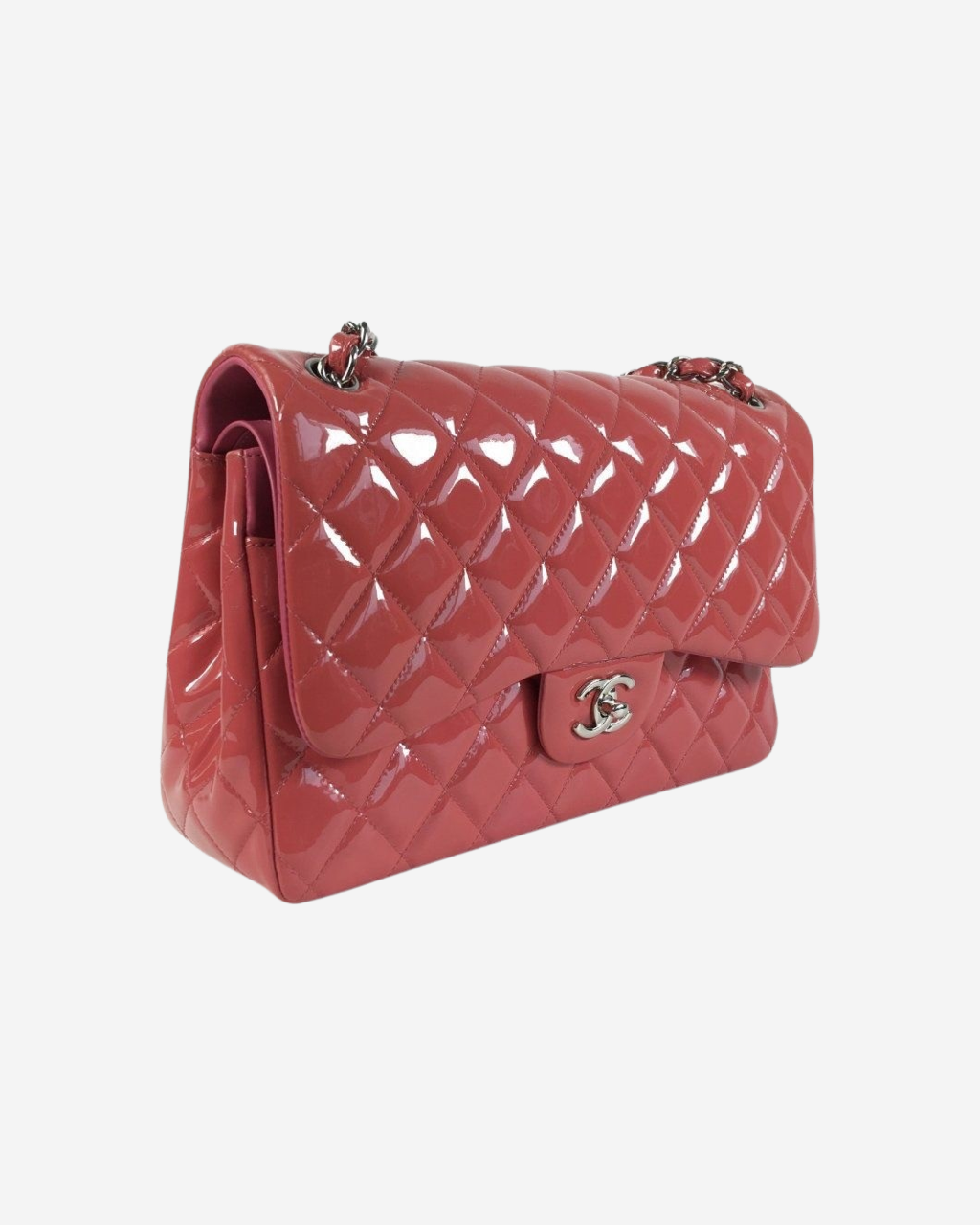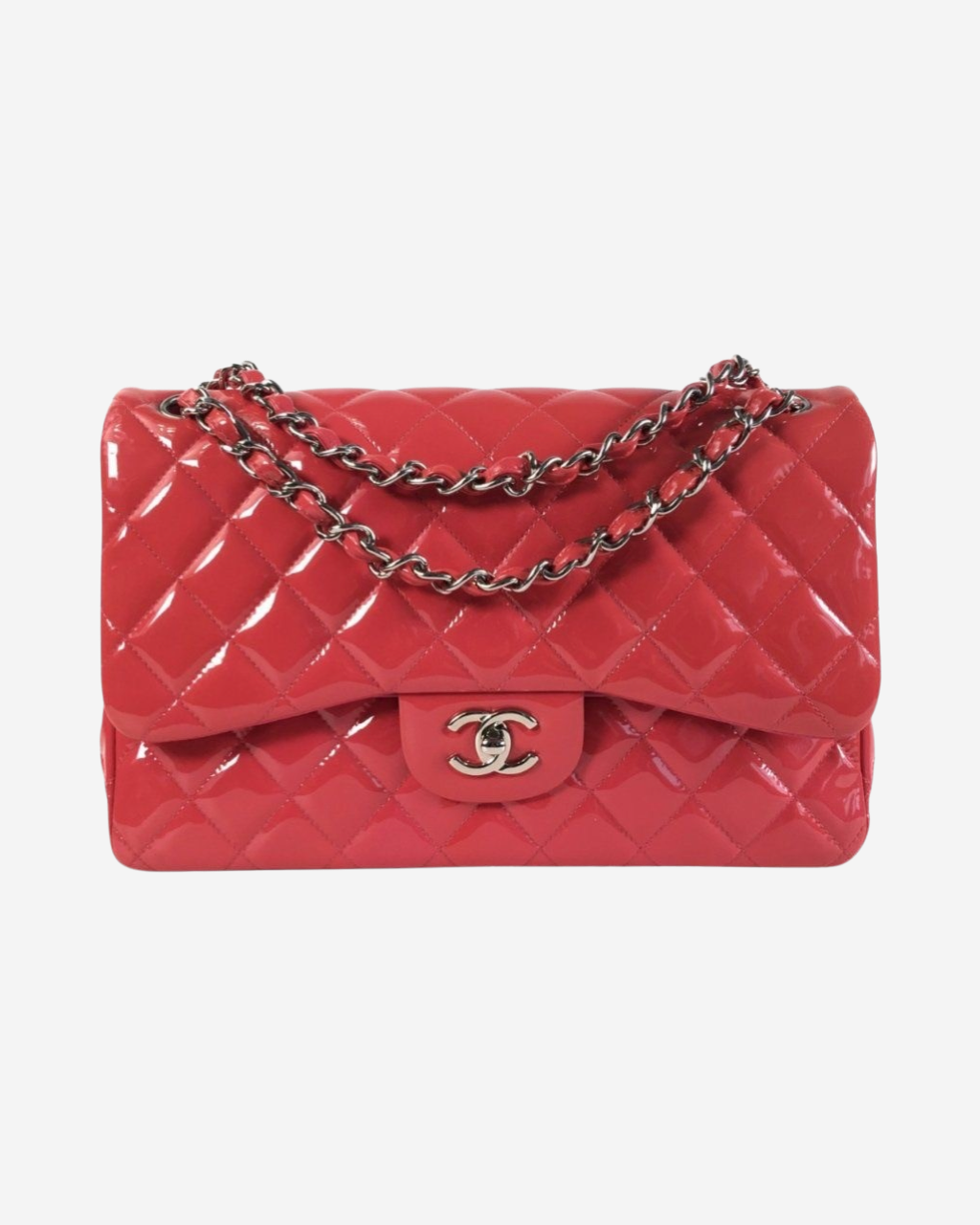 • Descripción: Bolsa Classic Double flap con correa de cadena, cierre giratorio con doble CC característico, con hardware en color plateado.