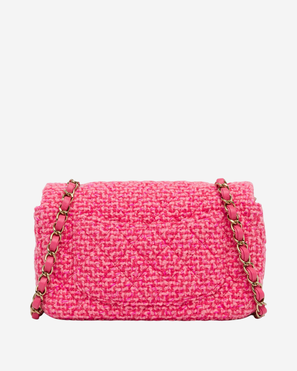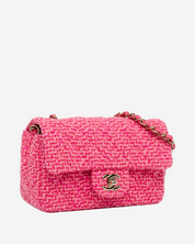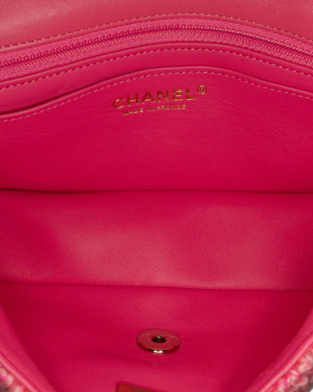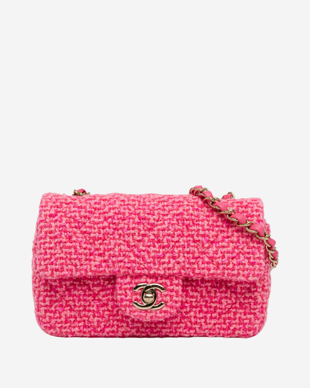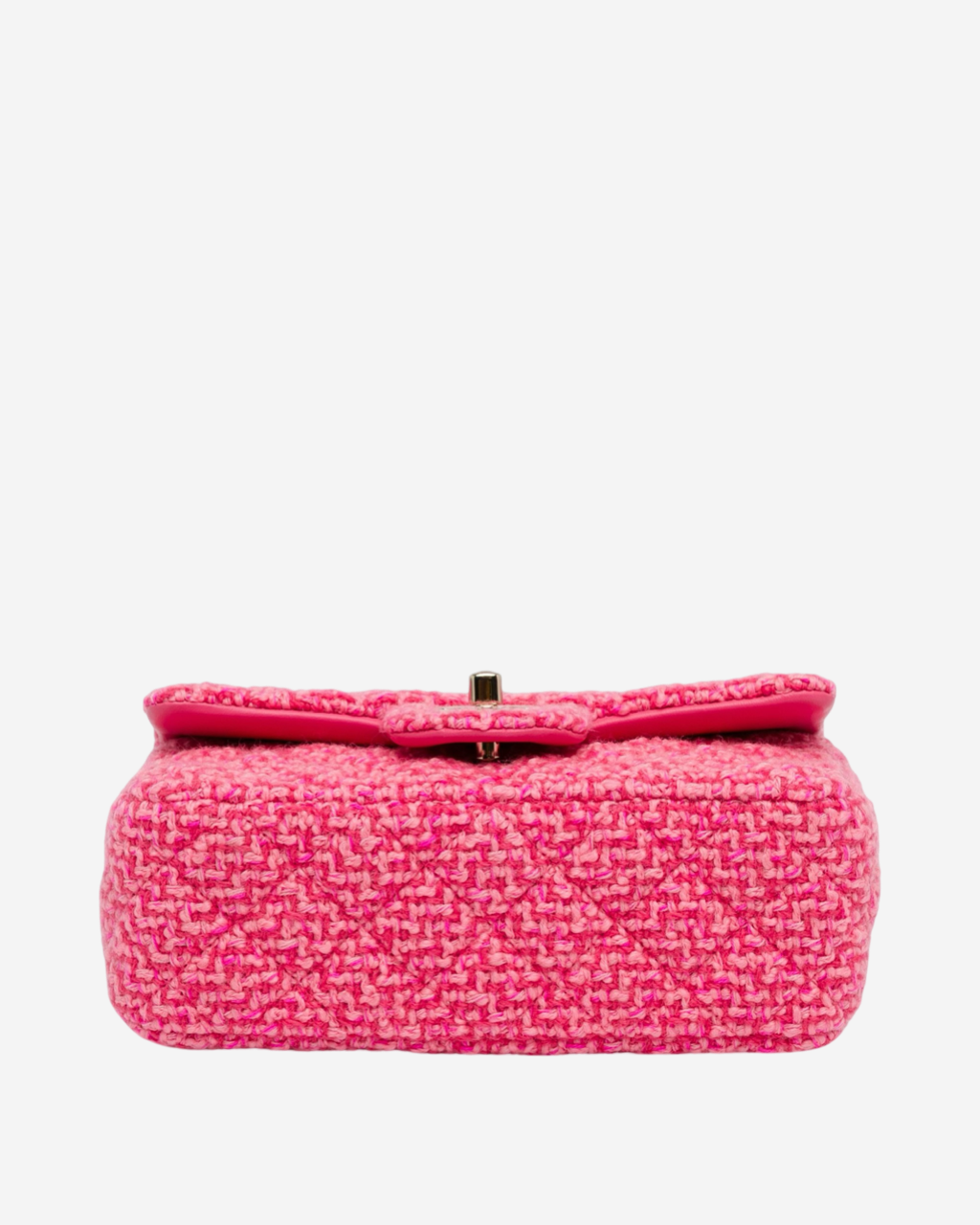 - Descripción: Bolsa de hombro mini en tweed, broche Chanel CC Turnlock, solapa frontal, interior en piel con bolsillo, hardware color dorado