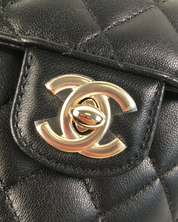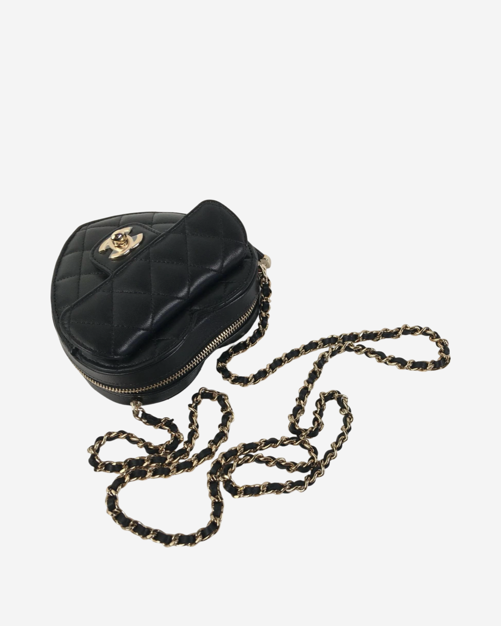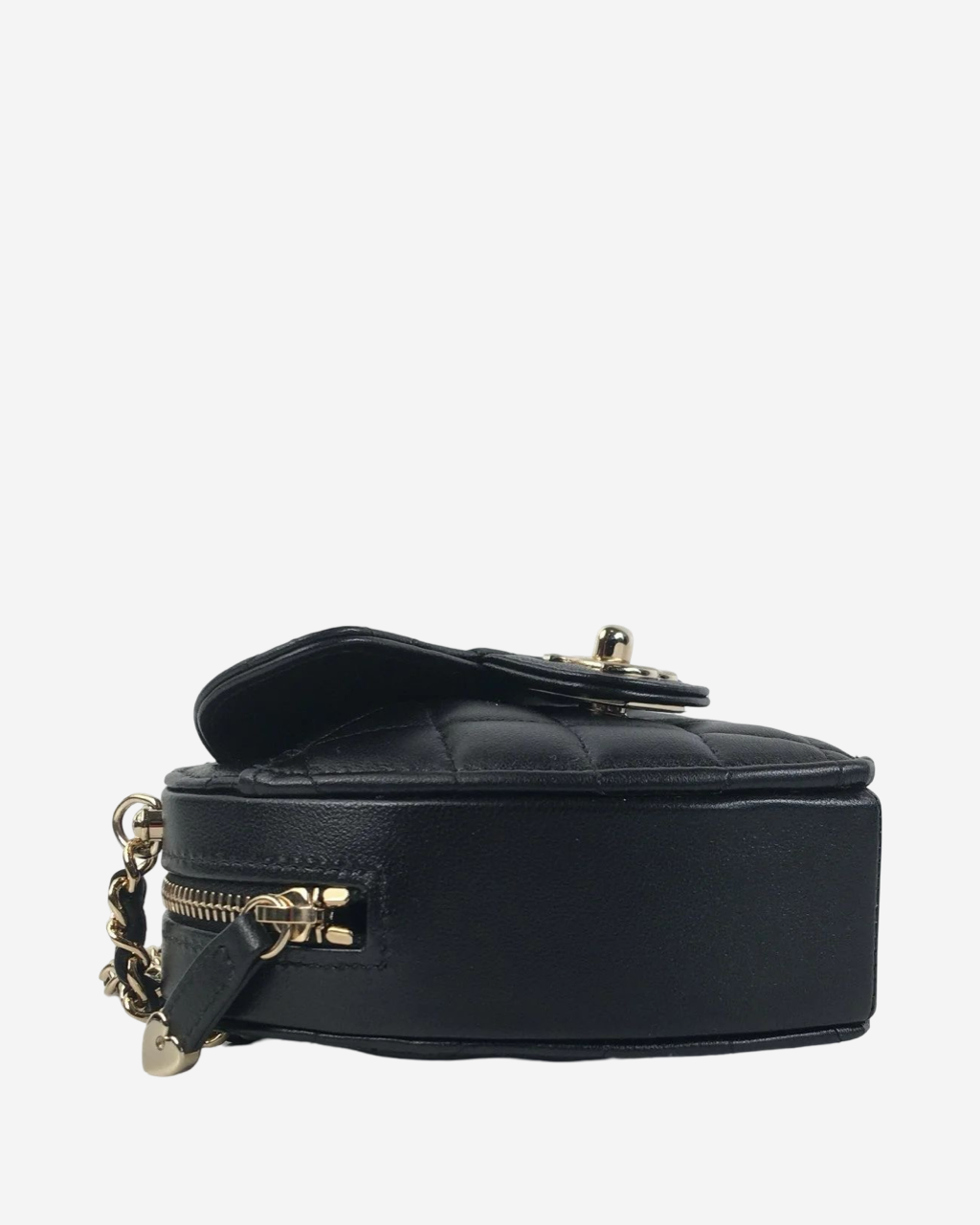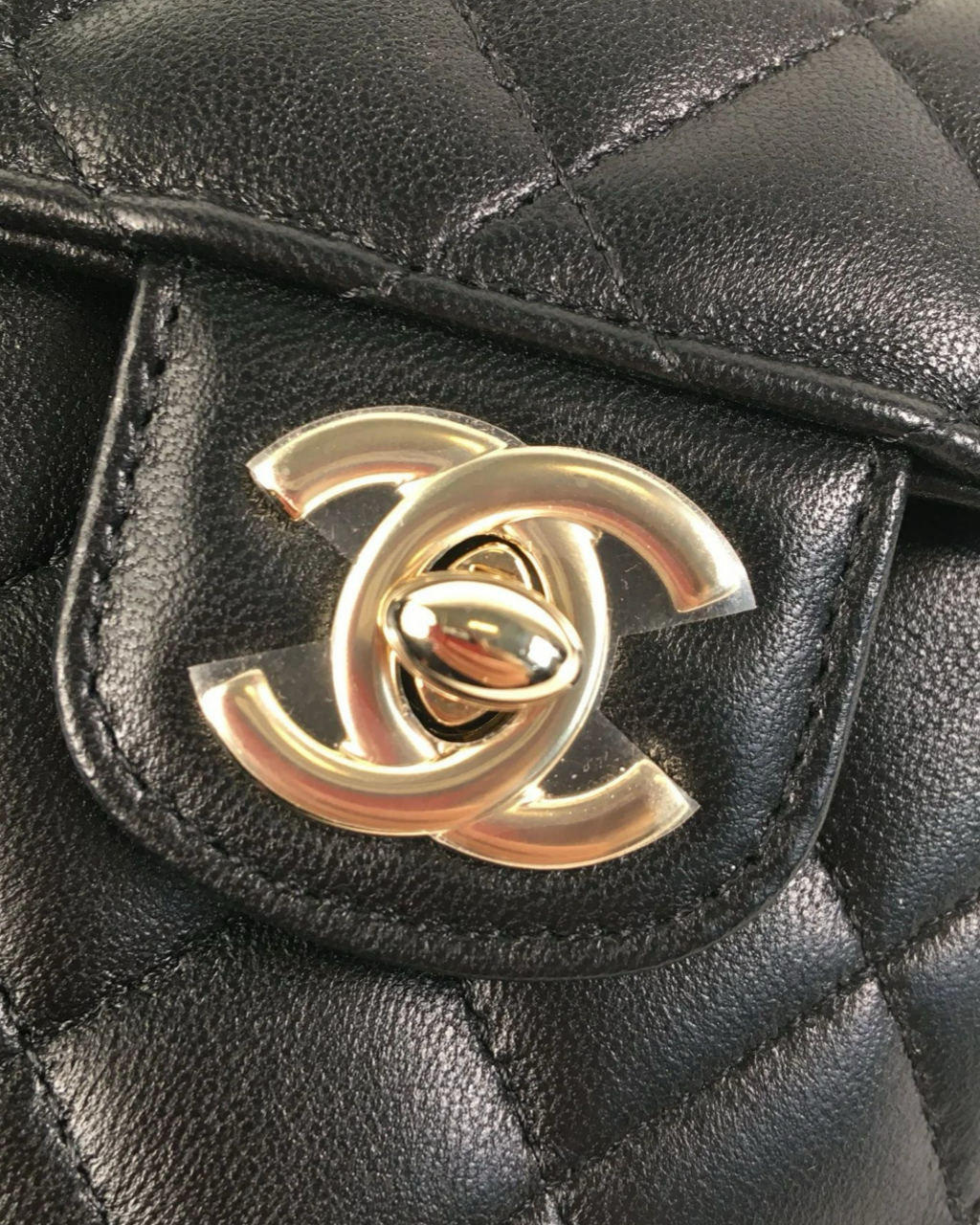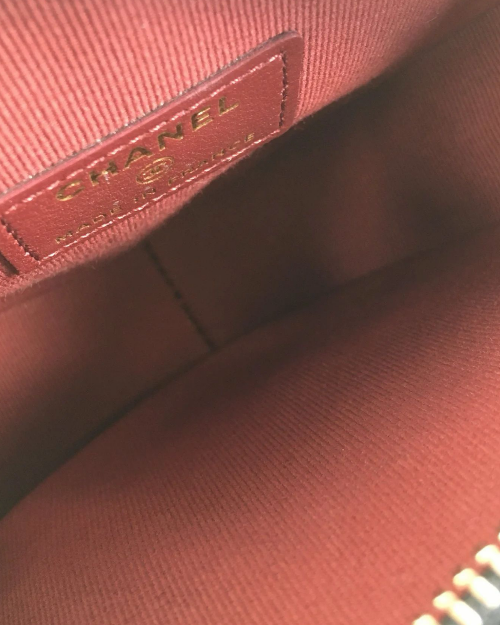 - Descripción: Bolsa de cruzada con strap, broche CC Turnlock, forro interior en tela color rojo, hardware color plateado