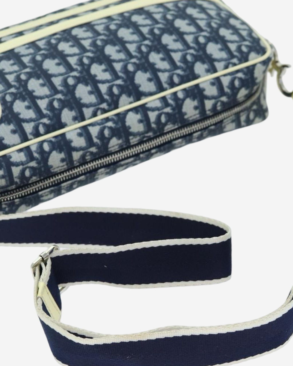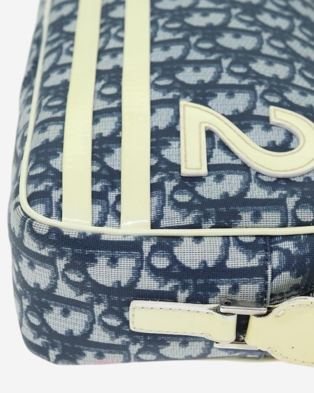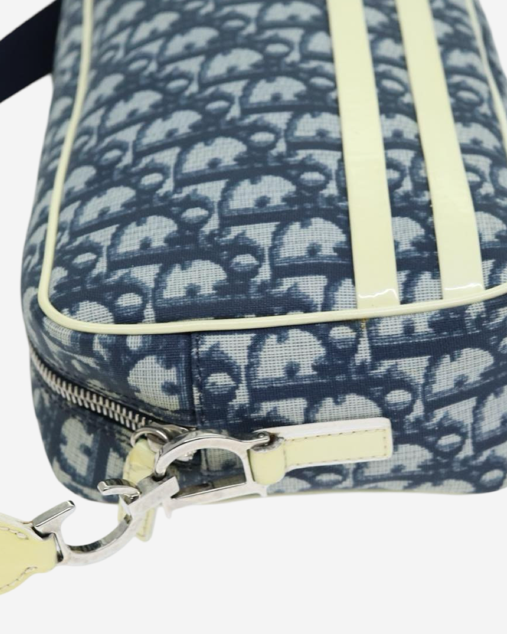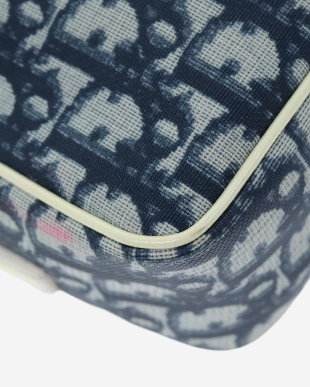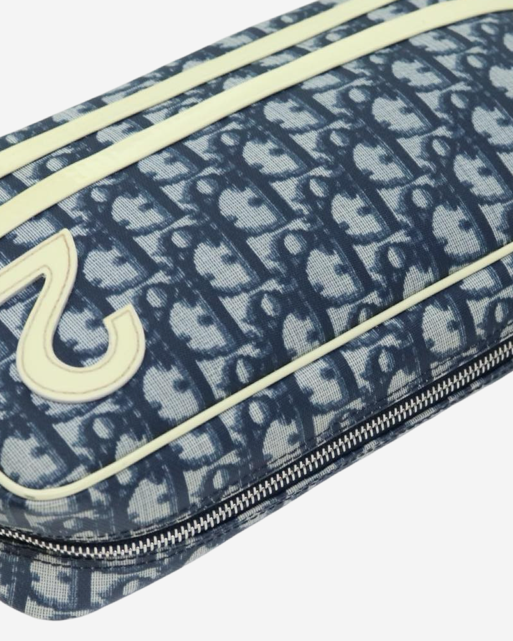 - Descripción: Pouch en canvas con cierre al tope, bordado frontal, hardware plateado