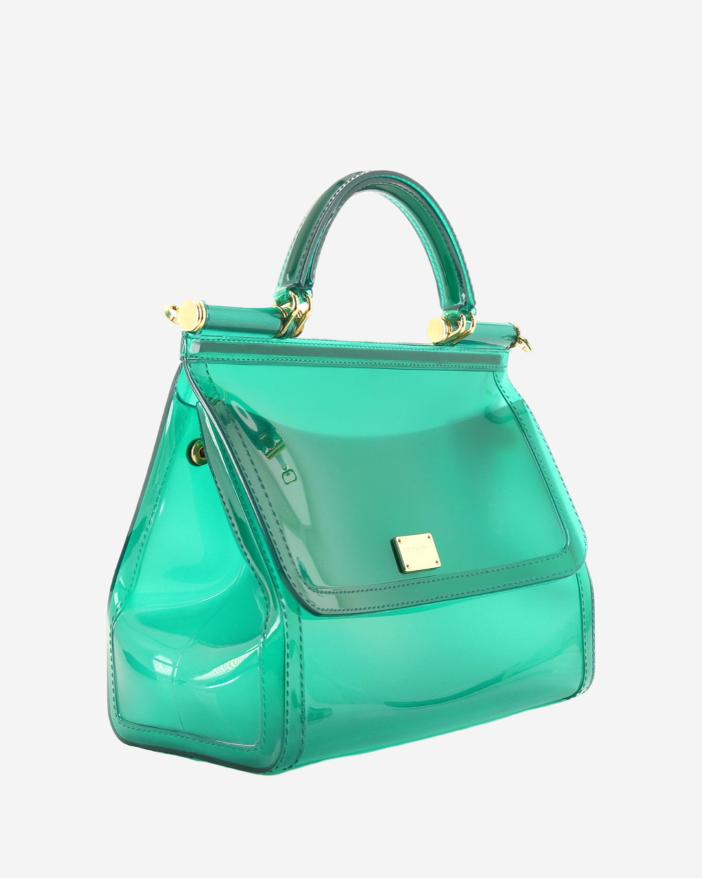 - Descripción: Bolsa de mano con una asa, broche frontal magnético, hardware dorado