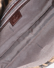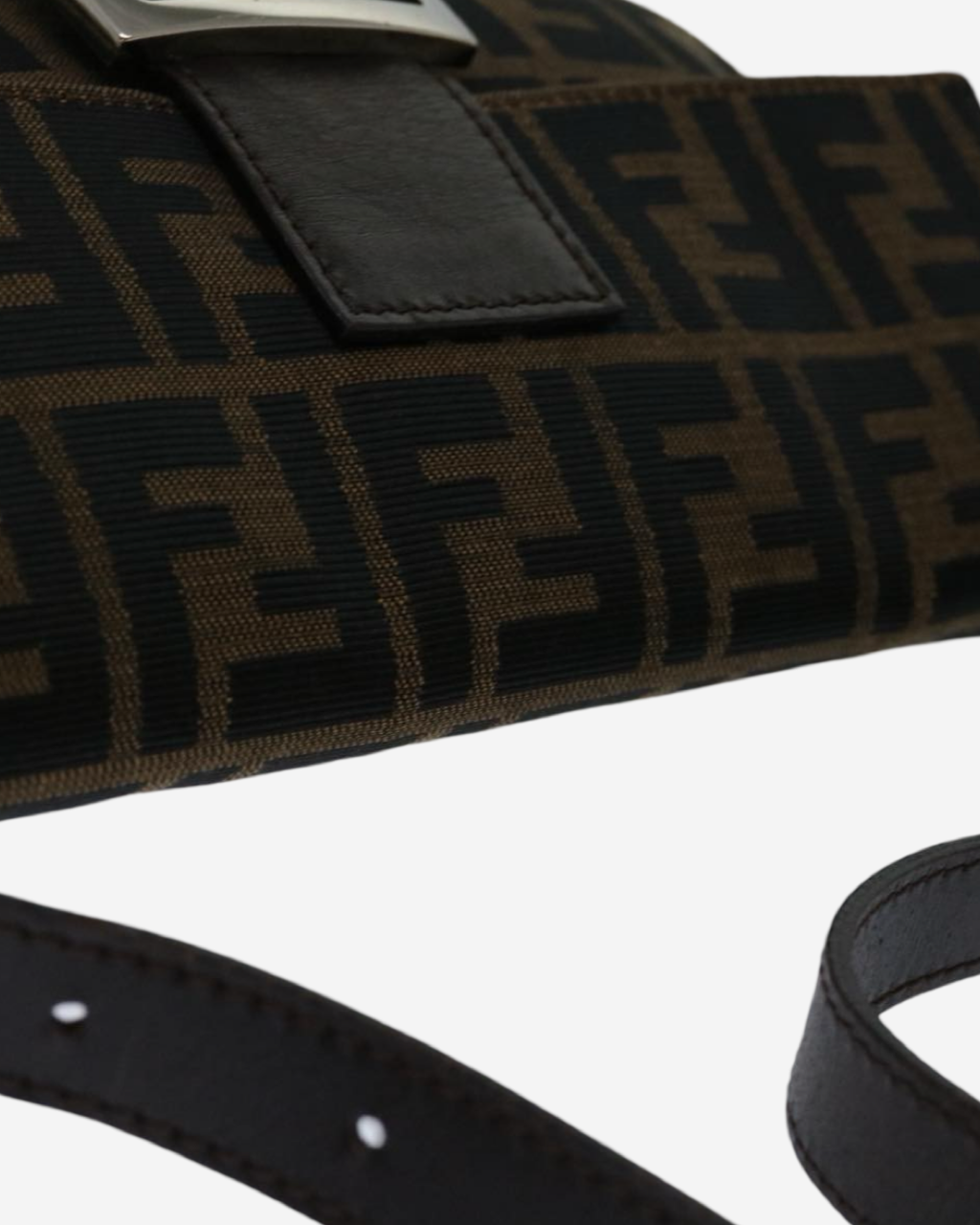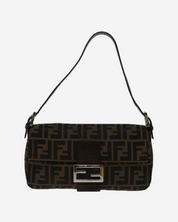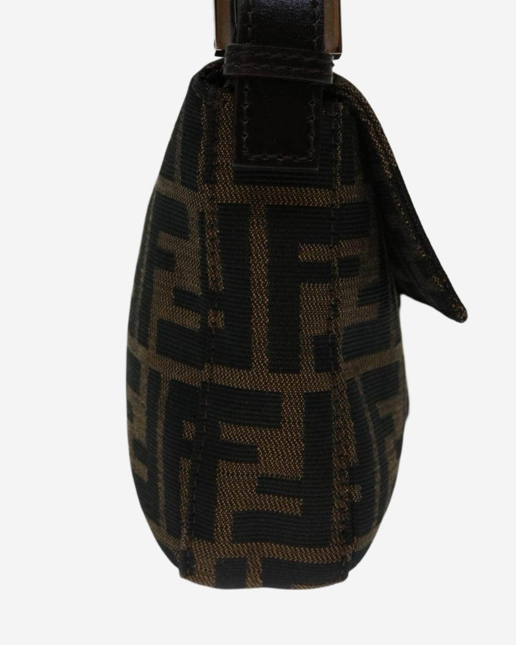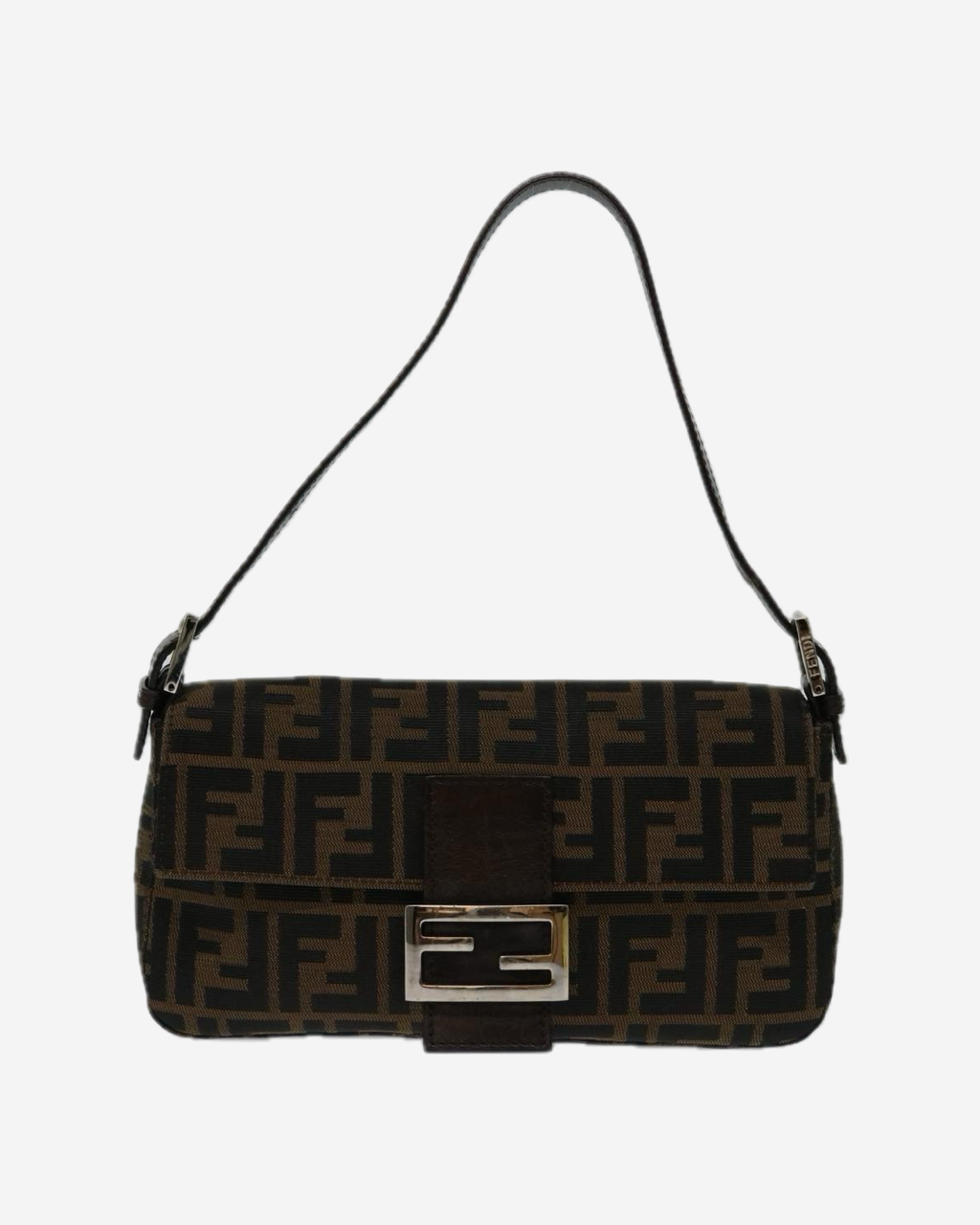 - Descripción: Bolso Baguette en canvas zucchino con broche frontal magnético, asa de hombro en piel, abertura principal con cierre en bolsillo interior, hardware en color plateado
