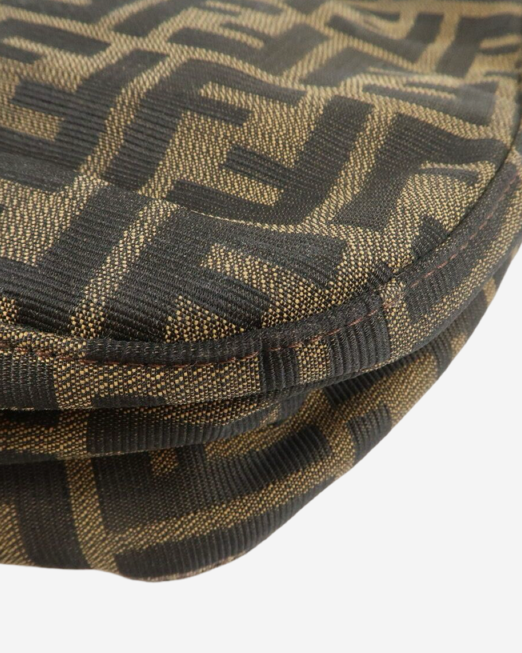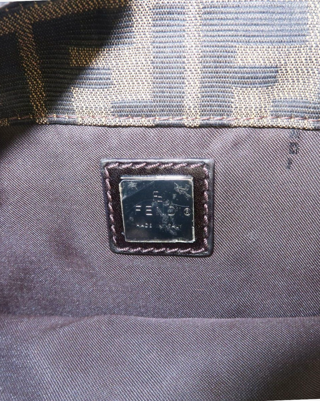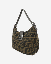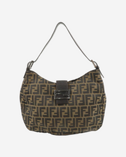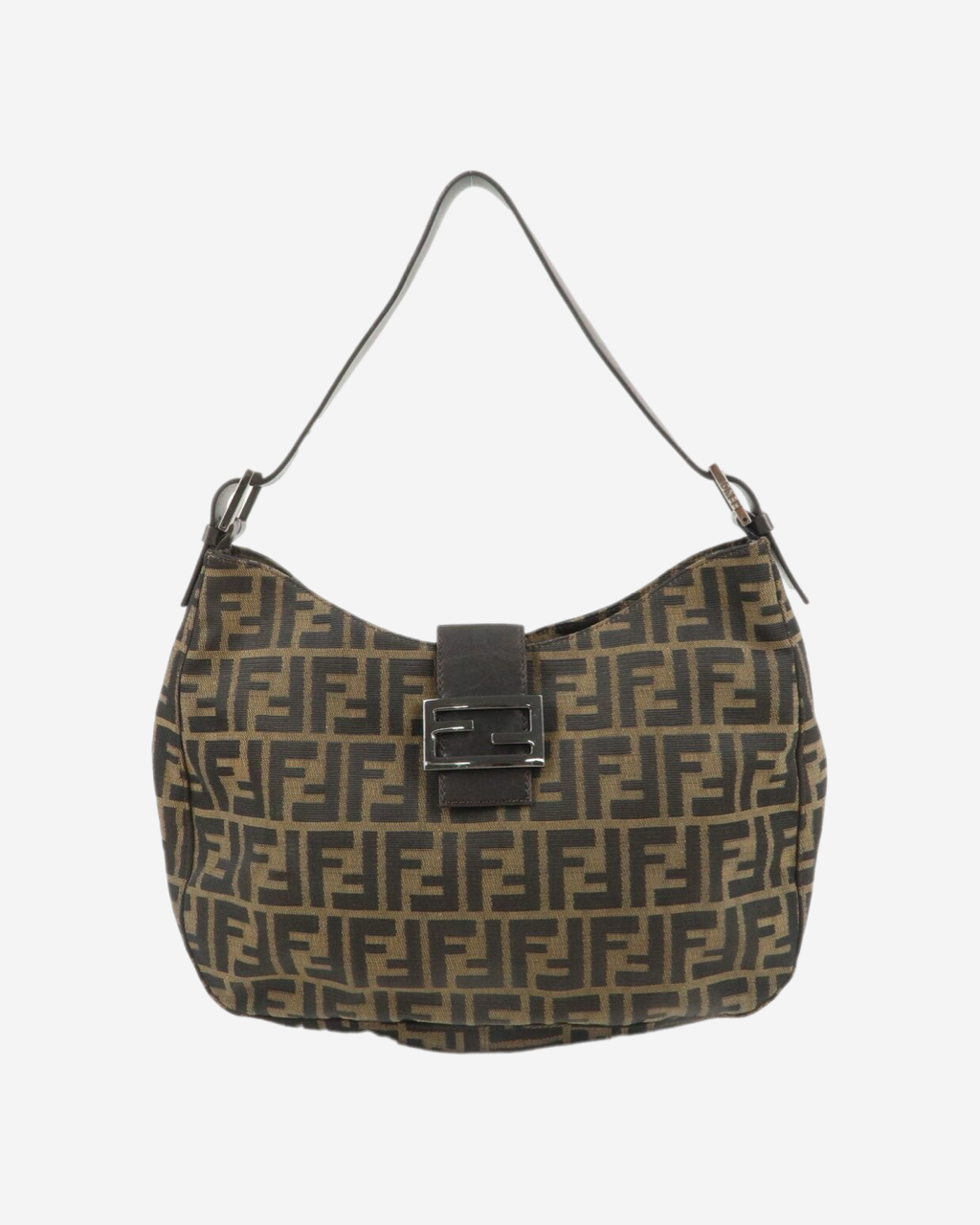- Descripción: Bolso de hombro en canvas zucca con asa fija, abertura principal abierta, broche FF magnético, hardware color plateado