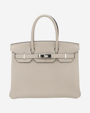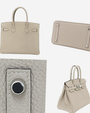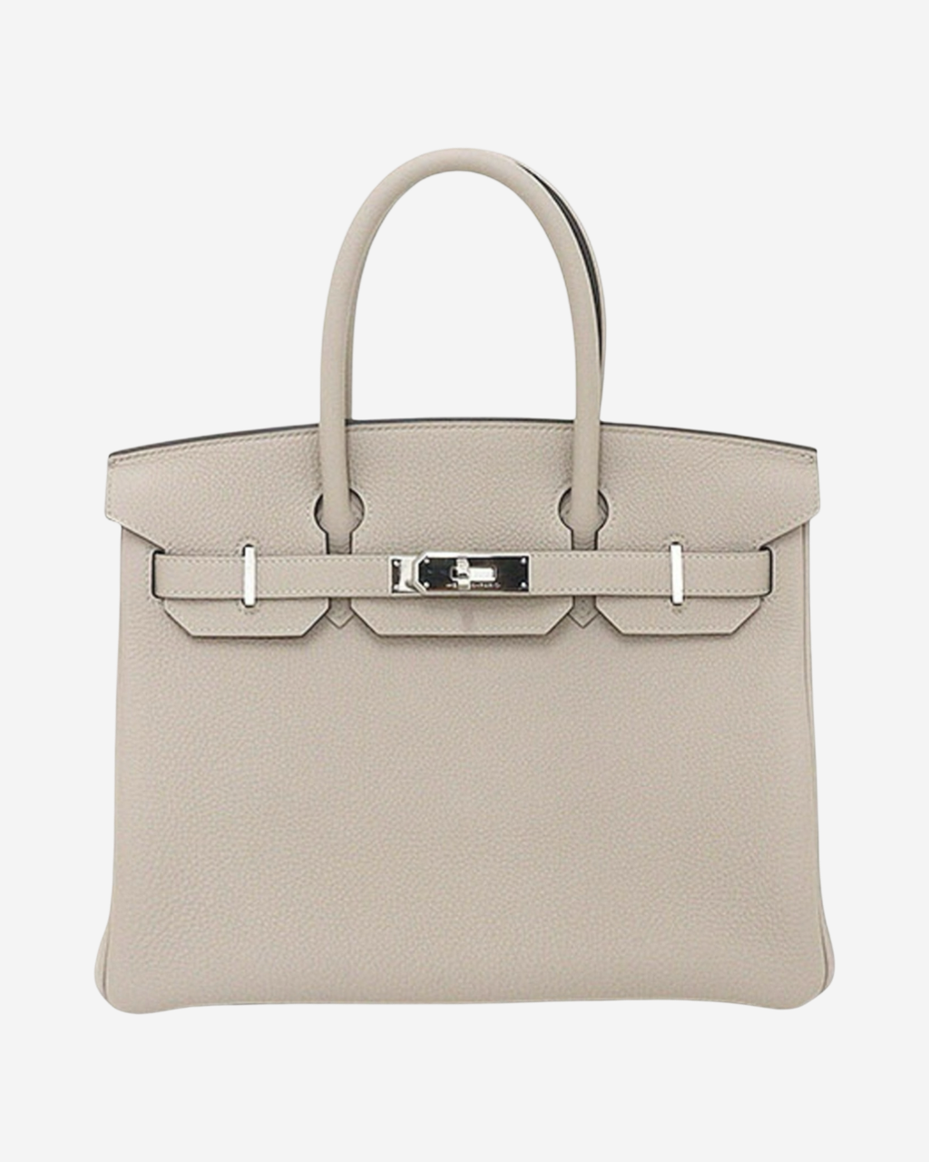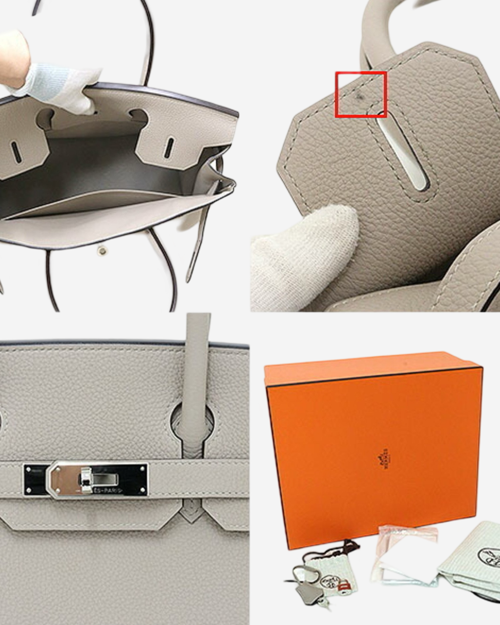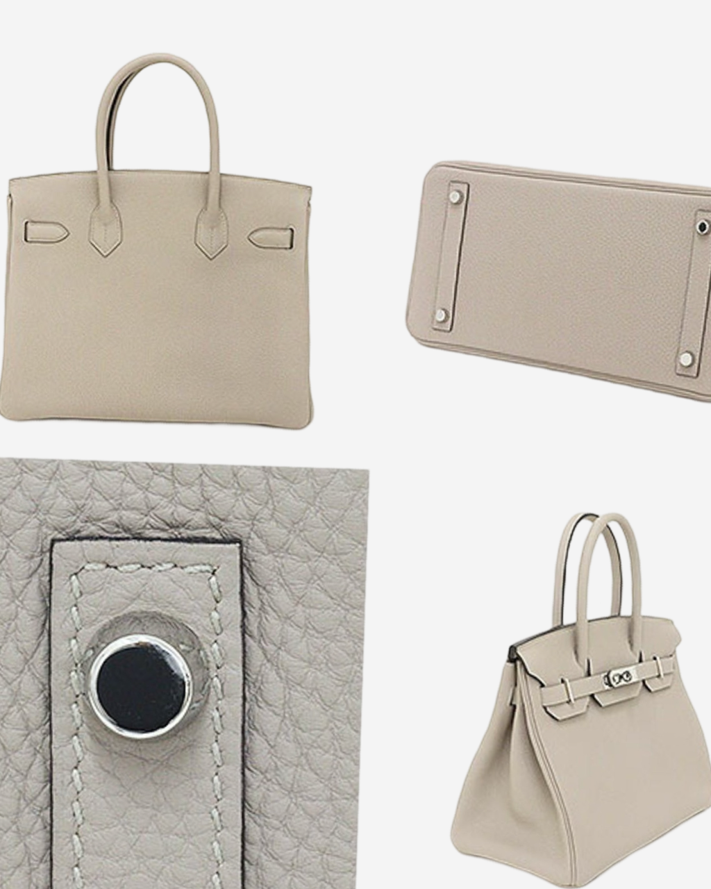 - Descripción: Bolsa de mano con asa rígida, broche frontal característico, interior en piel, bolsillo interior con cierre
