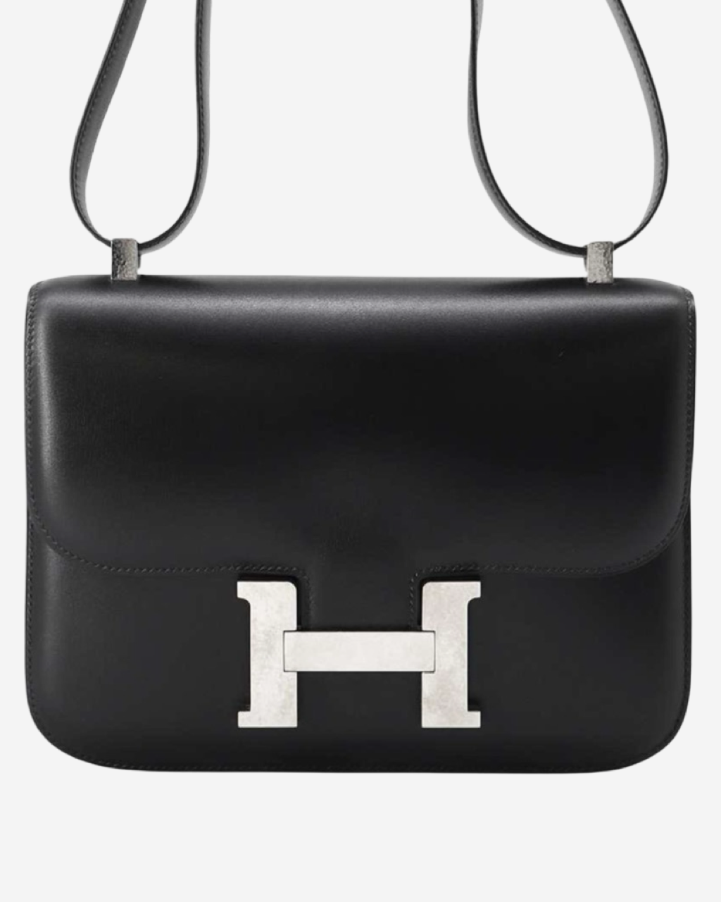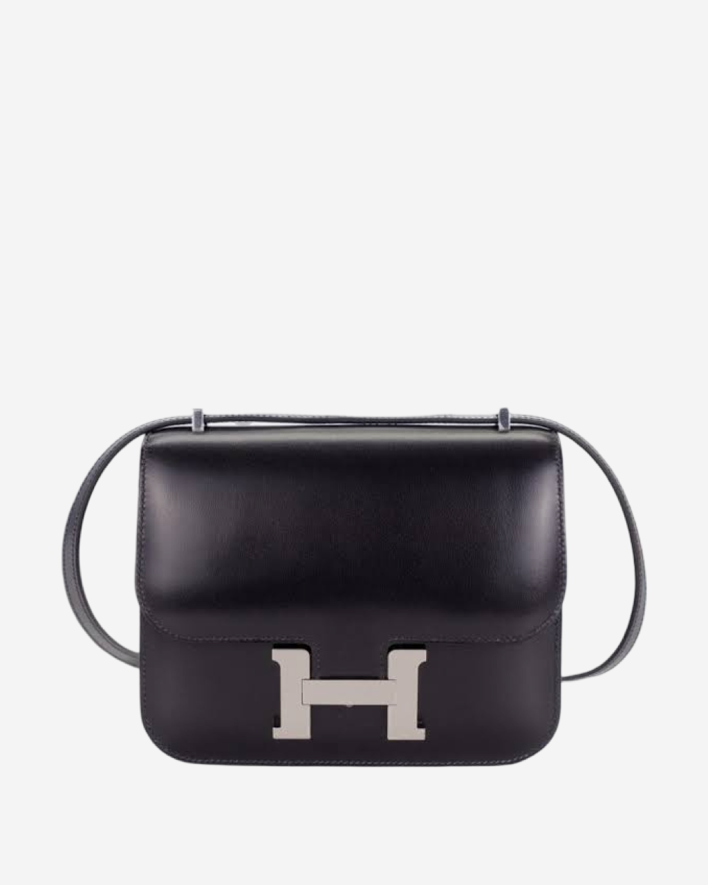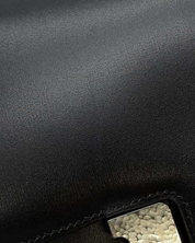 - Descripción: Bolsa cruzada en piel color negro, broche H característico, forro en piel color negro, hardware color plateado