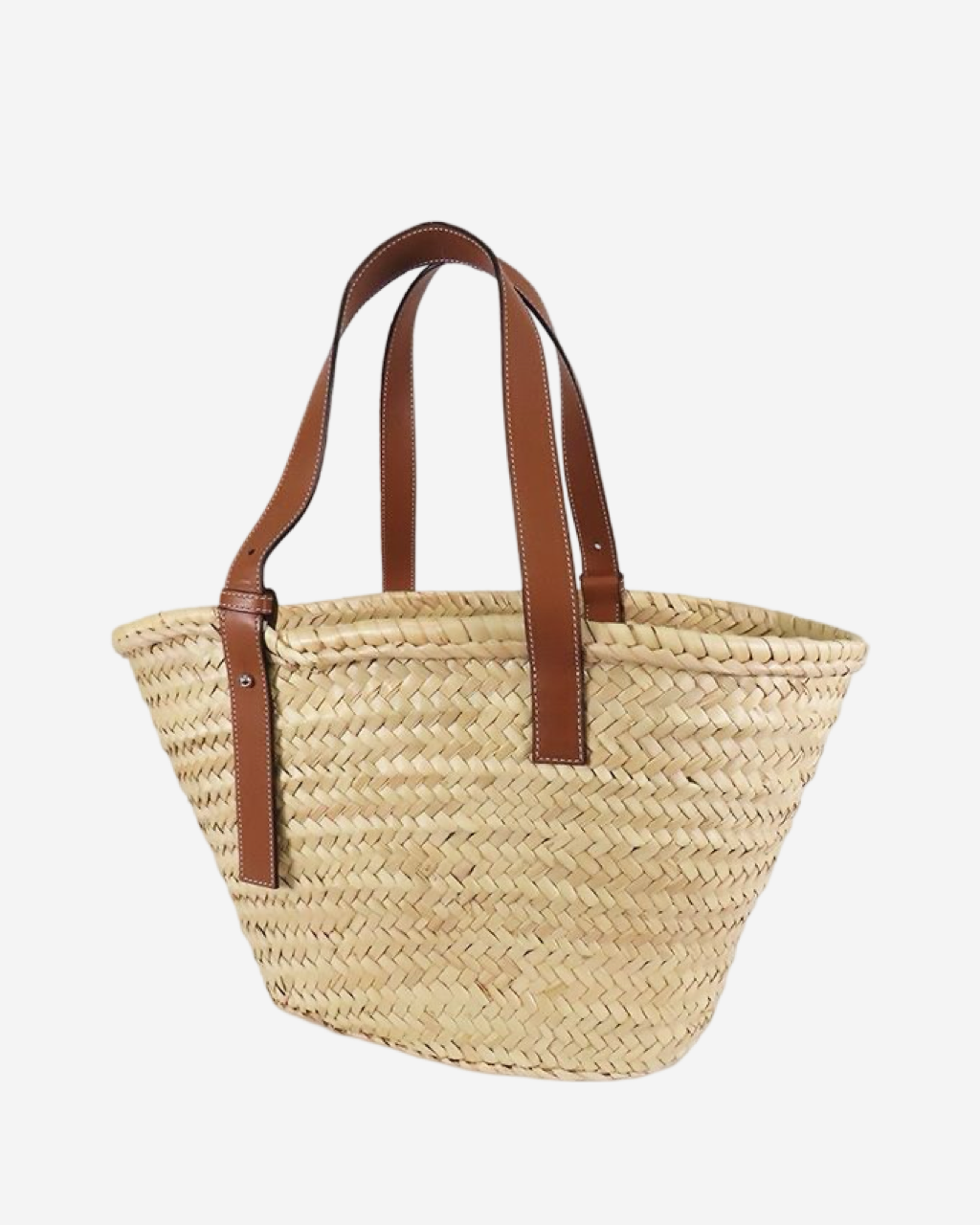 - Descripción: Bolso de hombro con diseño de canasta, abierto al tope y dos asas centrales de un lado ajustable, hardware color plateado