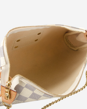 • Descripción: Bolsa de hombro en canvas damier azur, strap removible de cadena, placa frontal, hardware color dorado