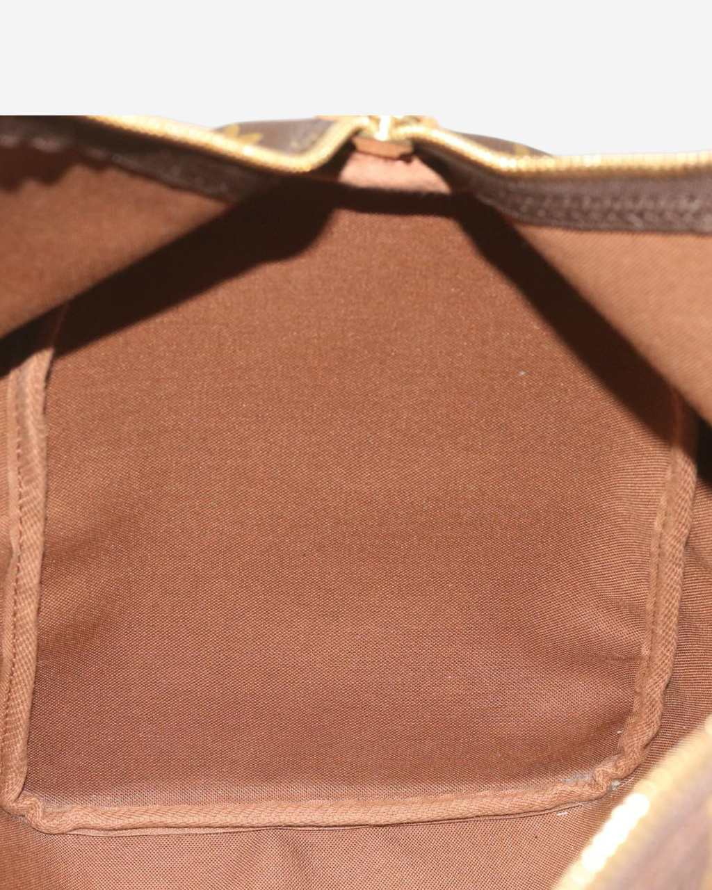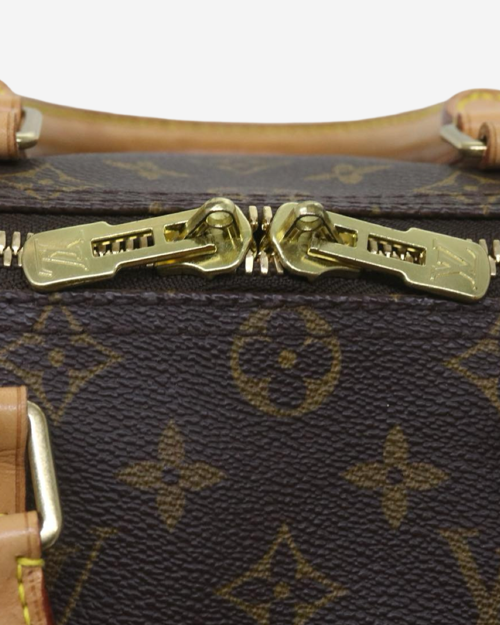 - Descripción: Bolsa de mano con dos asas, cierre con cremallera en el tope y compartimento principal, forro interior en tela, hardware color dorado