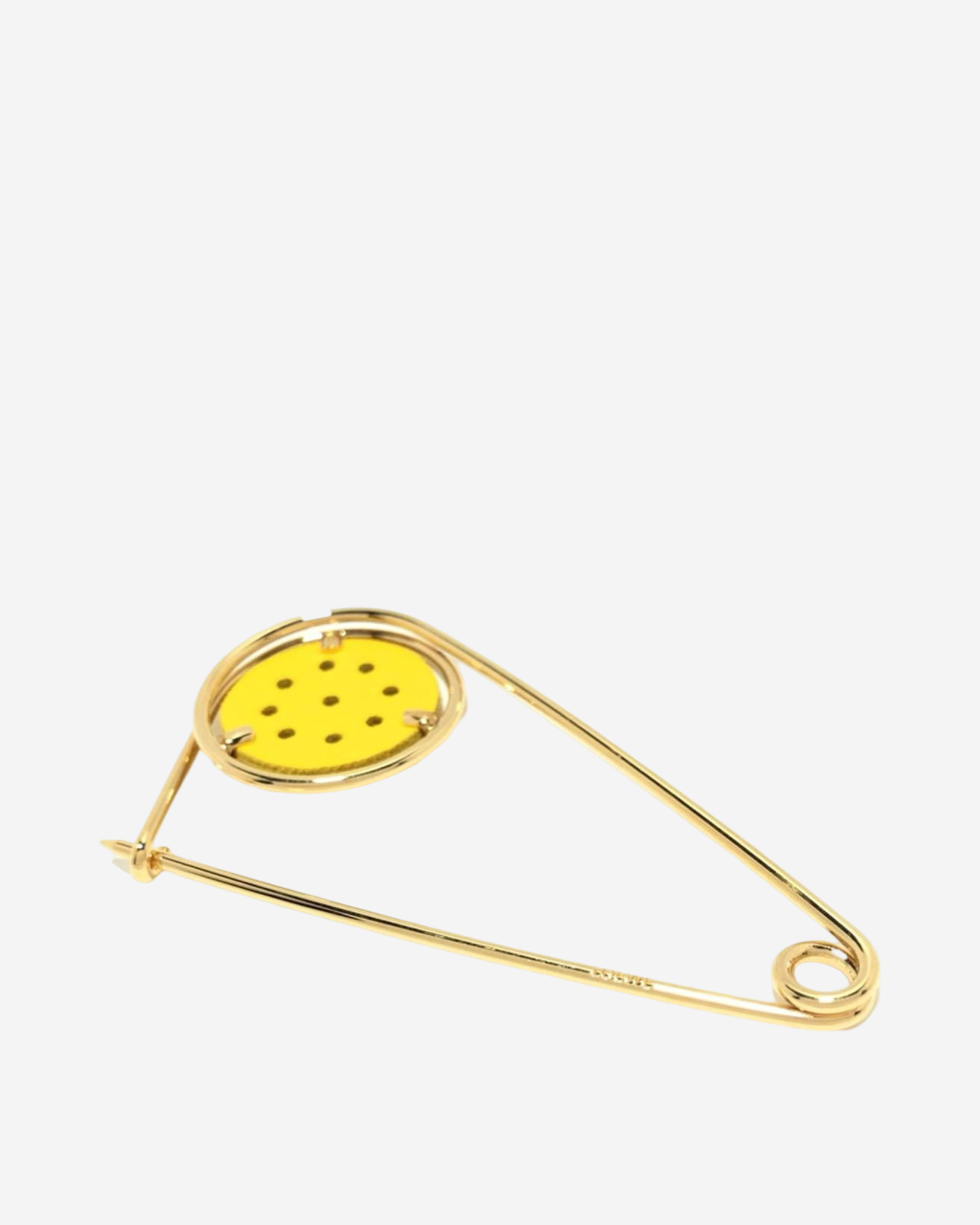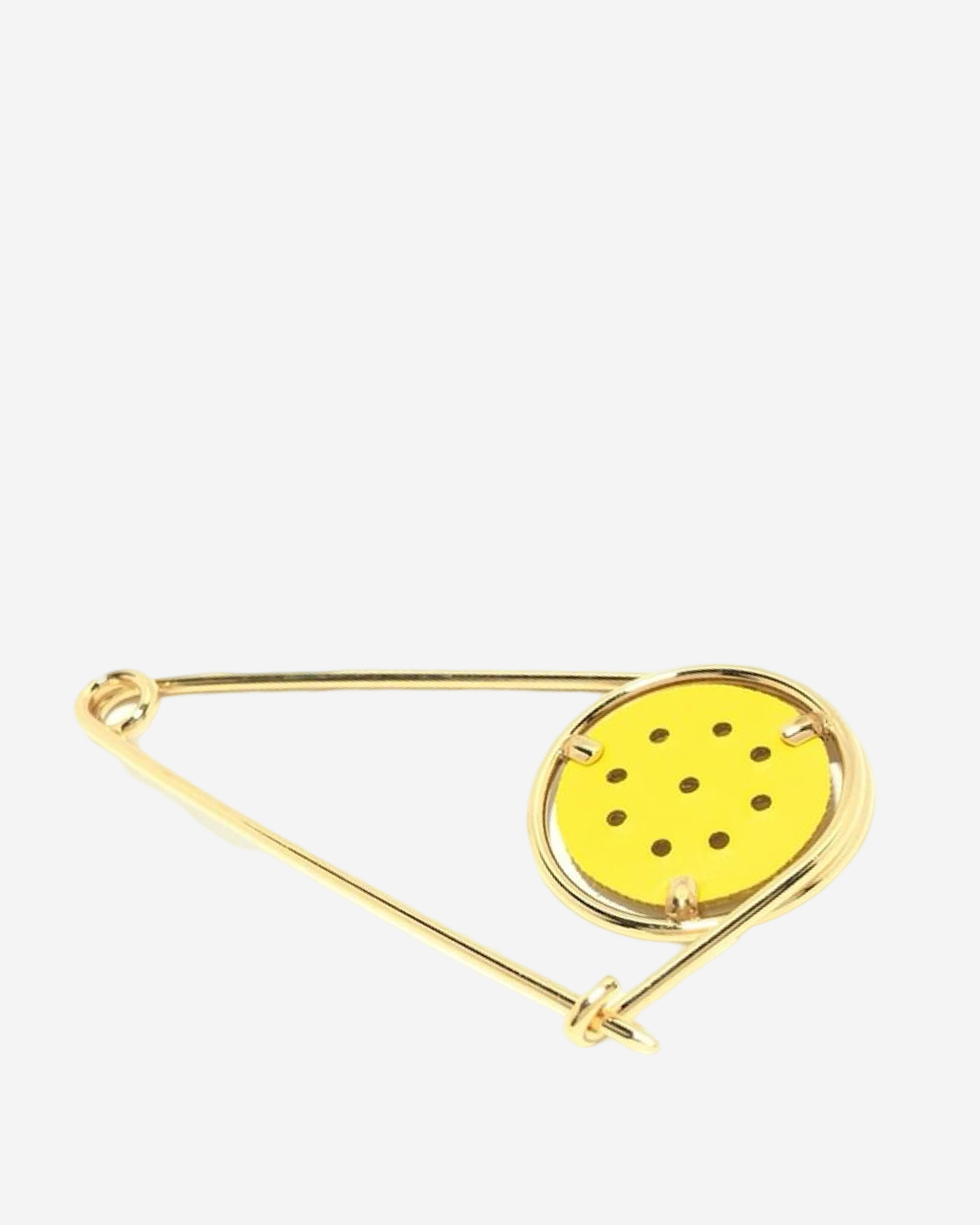 - Descripción: Broche en baño de oro, botón en color amarillo