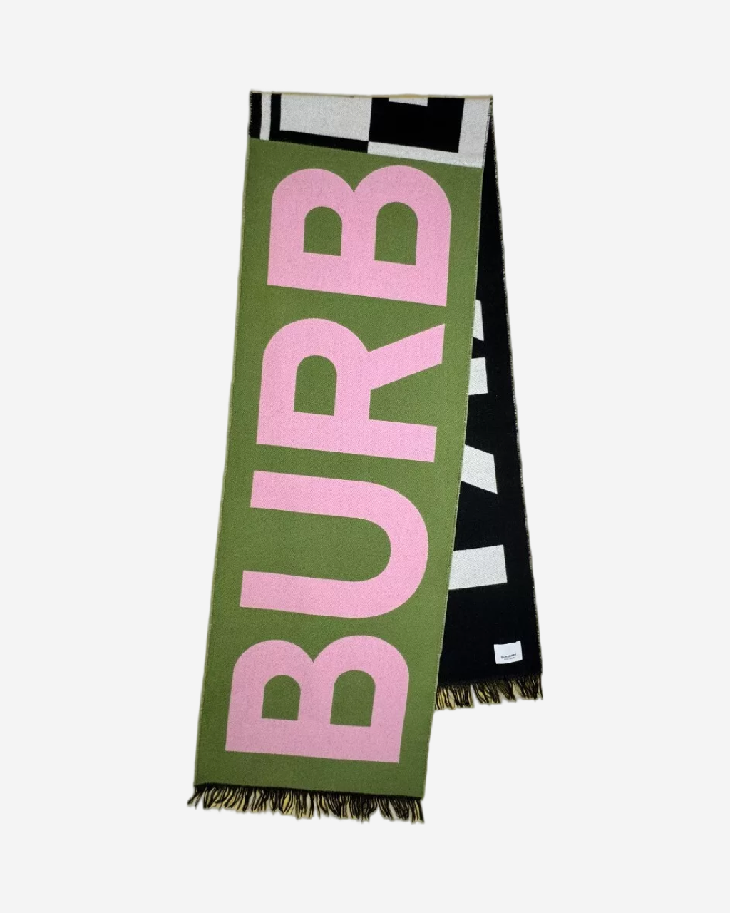 - Descripción: Bufanda Burberry en monogram en tonos verdes reversible en color negro y blanco, logo característico