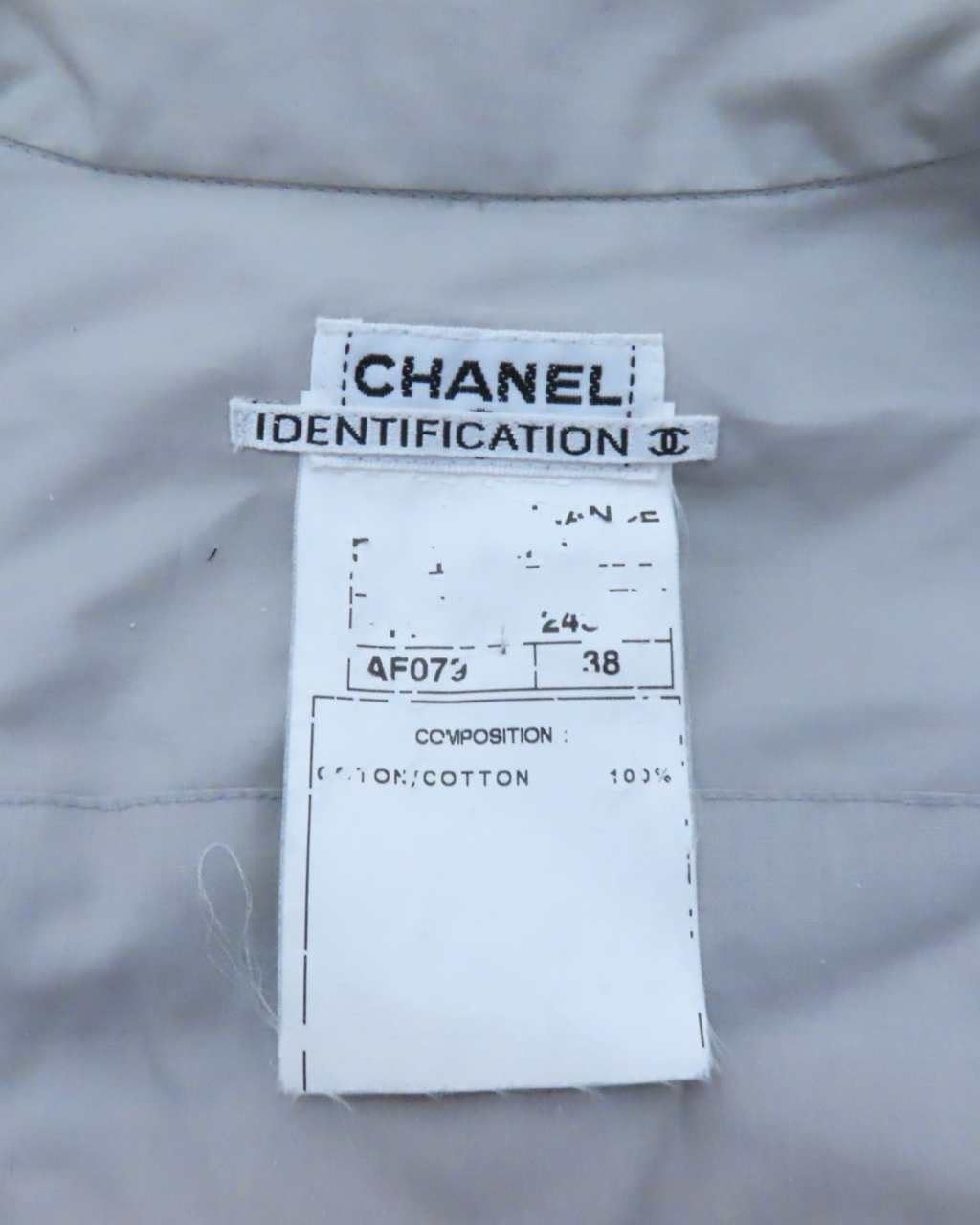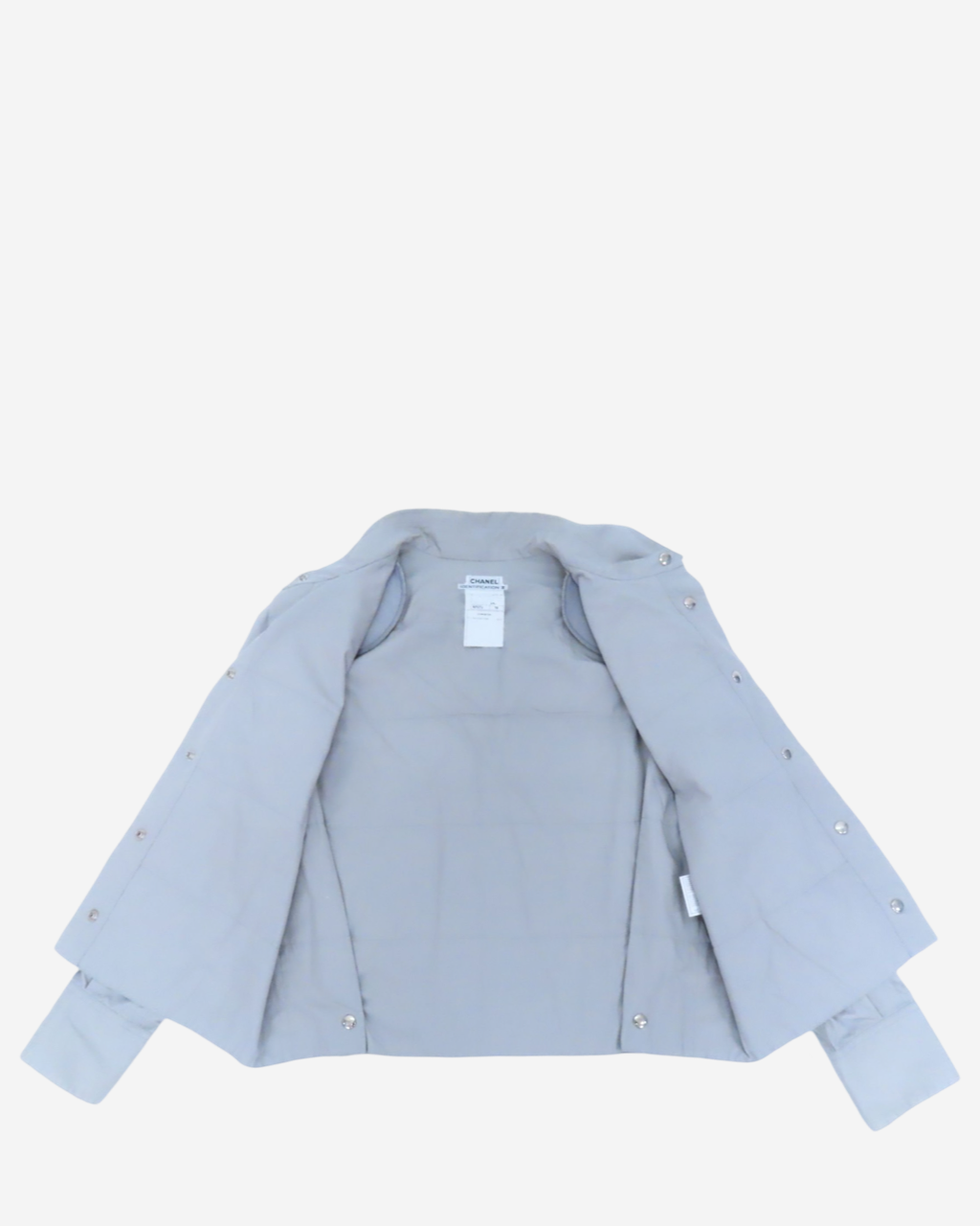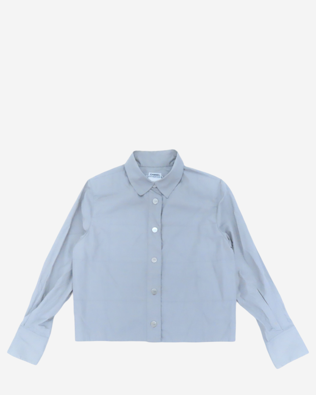 - Descripción: Camisa Chanel en color gris con botones, manga larga, cropped