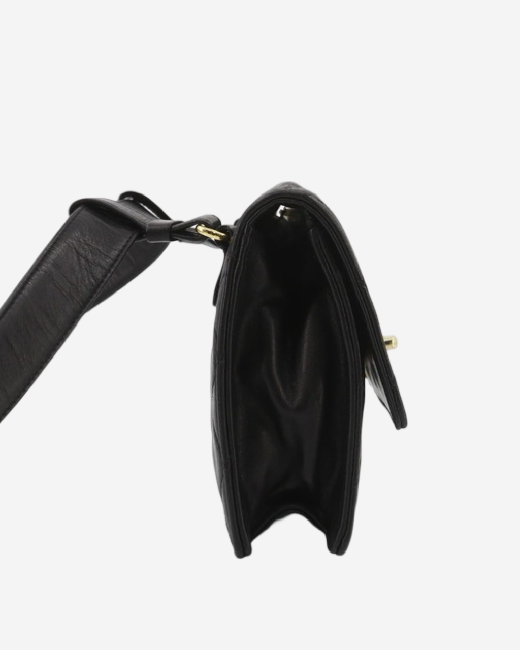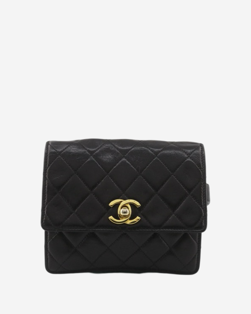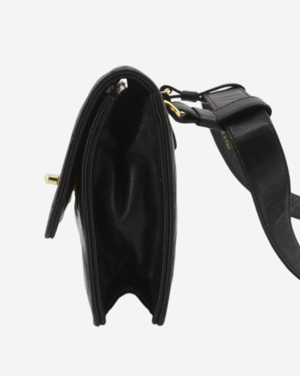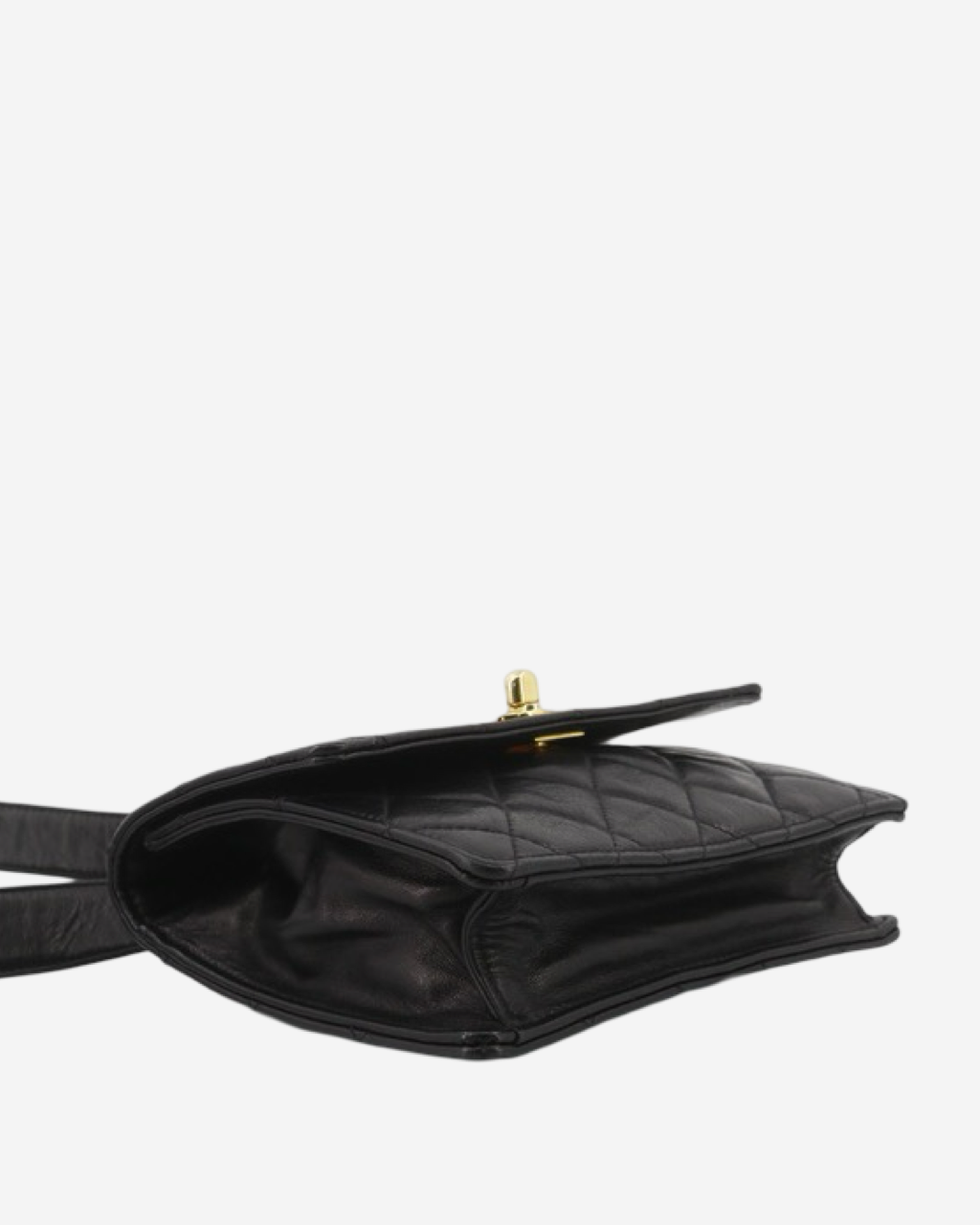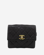 • Descripción: Cangurera Chanel en lambskin color negro, broche CC turnlock en baño de oro 24k, abertura con solapa, ajuste en la parte trasera con cinturón en piel, hardware color dorado