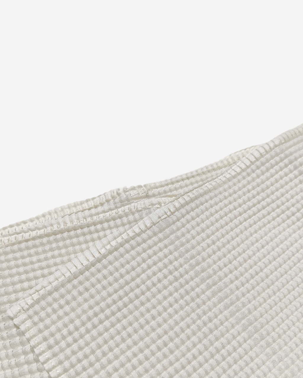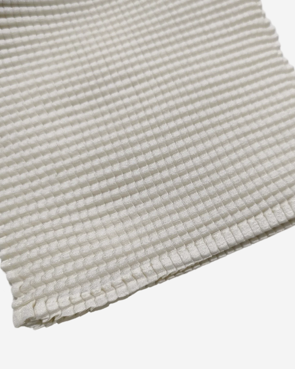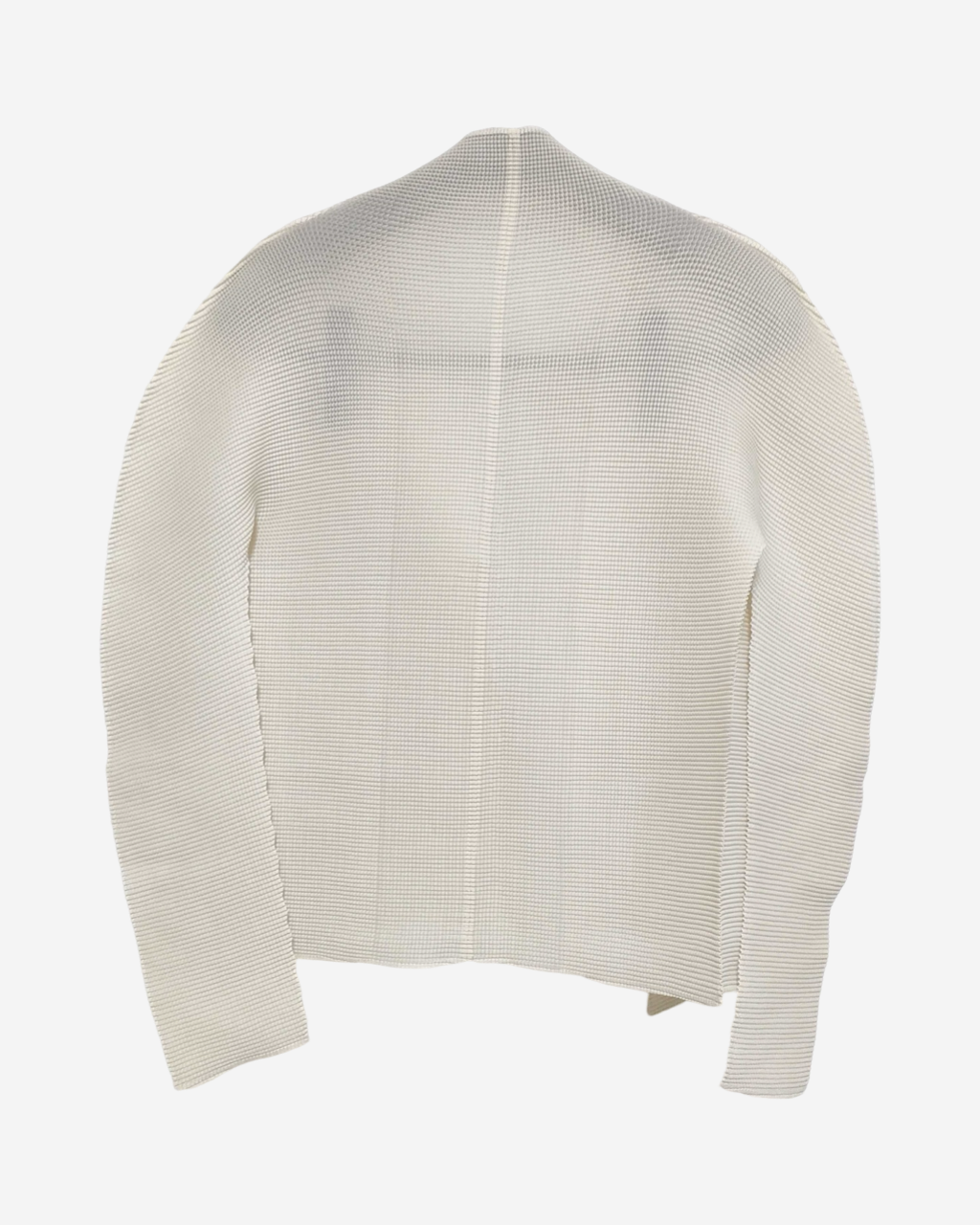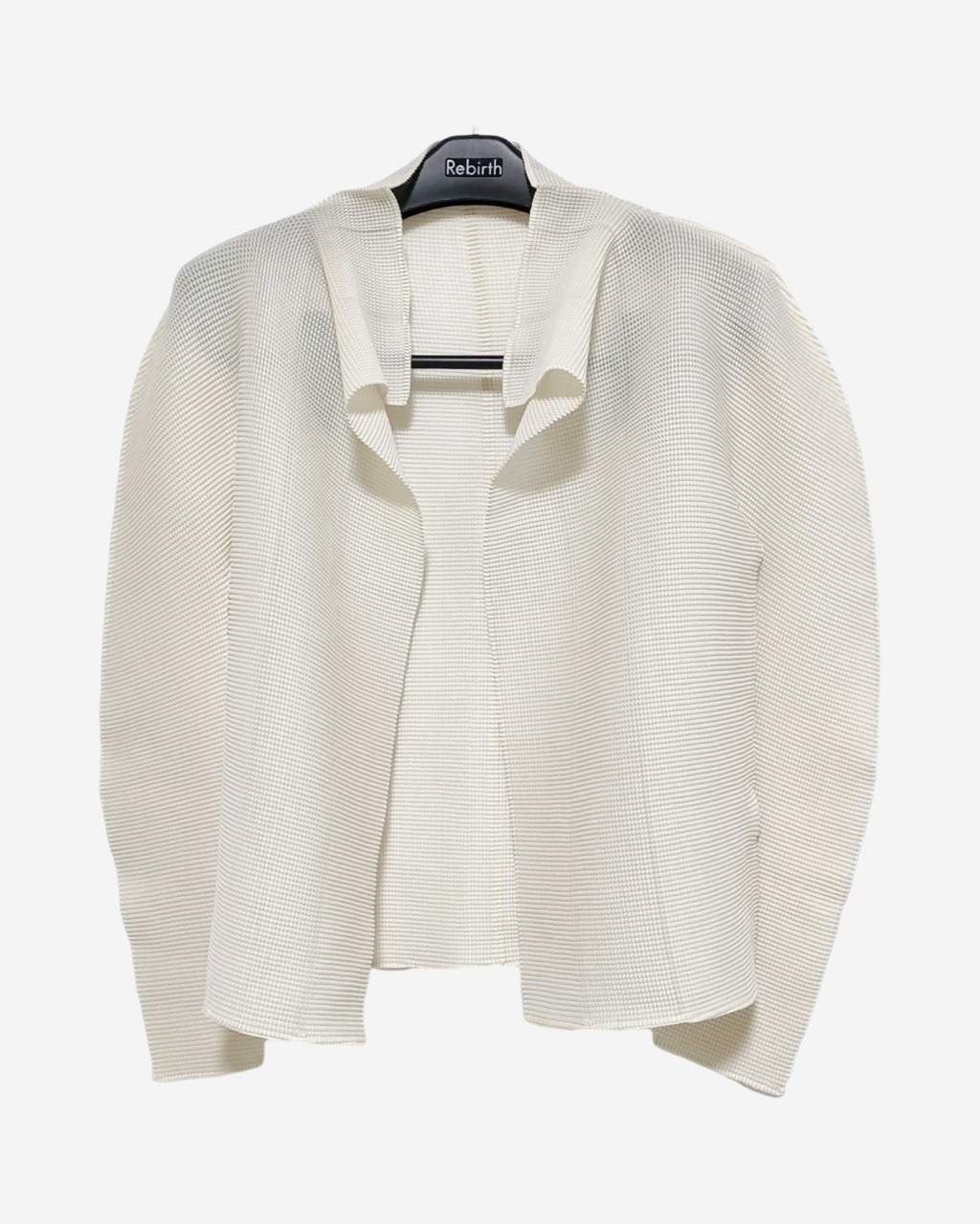 - Descripción: Cardigan en color blanco con pleats característicos de la marca, efecto translúcido, ,manga larga