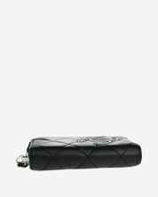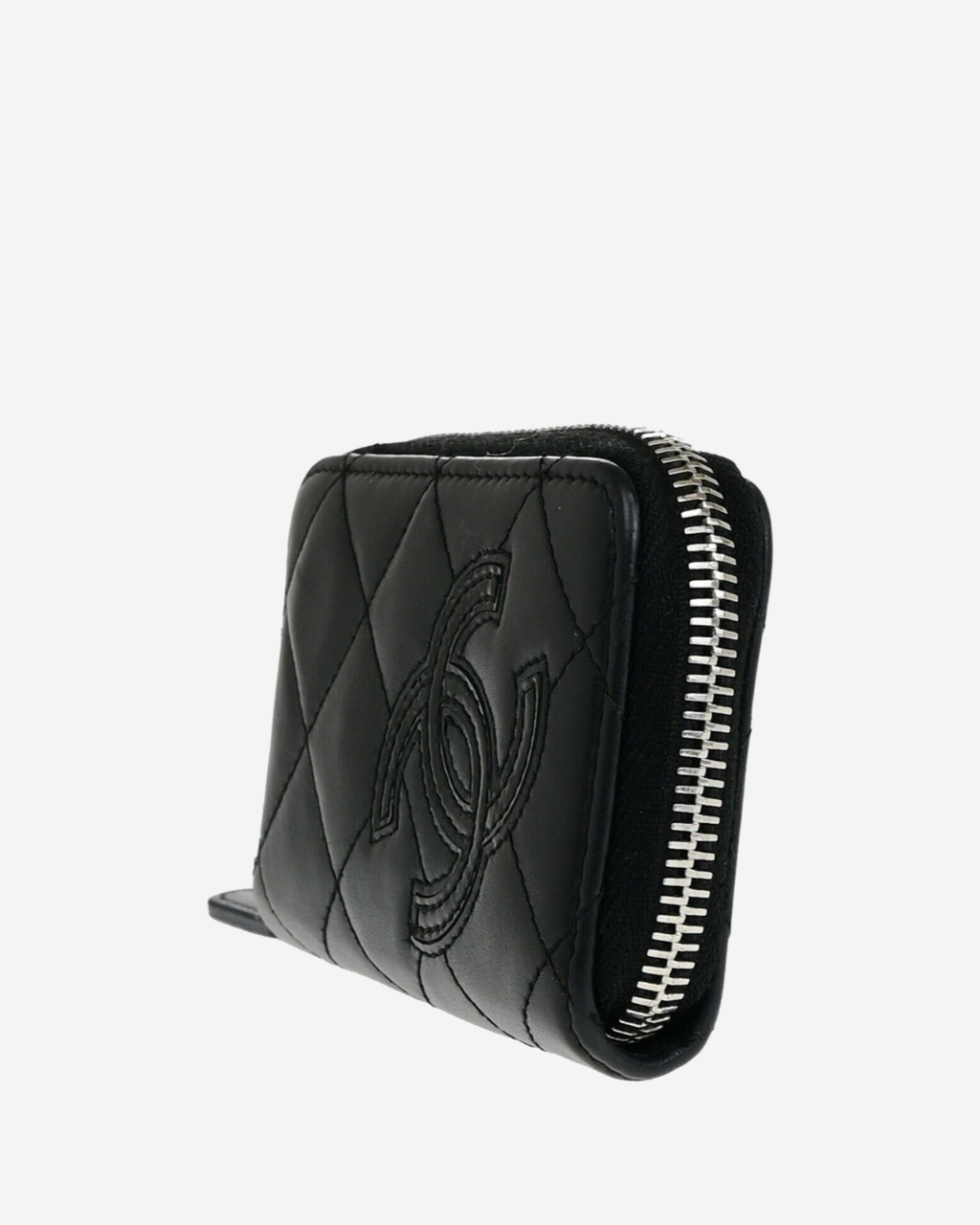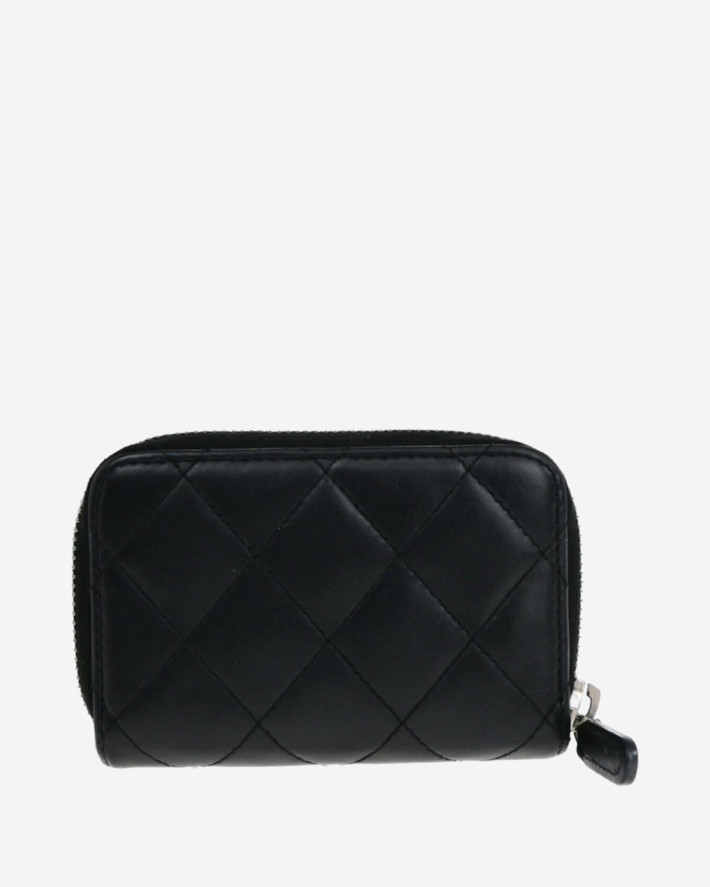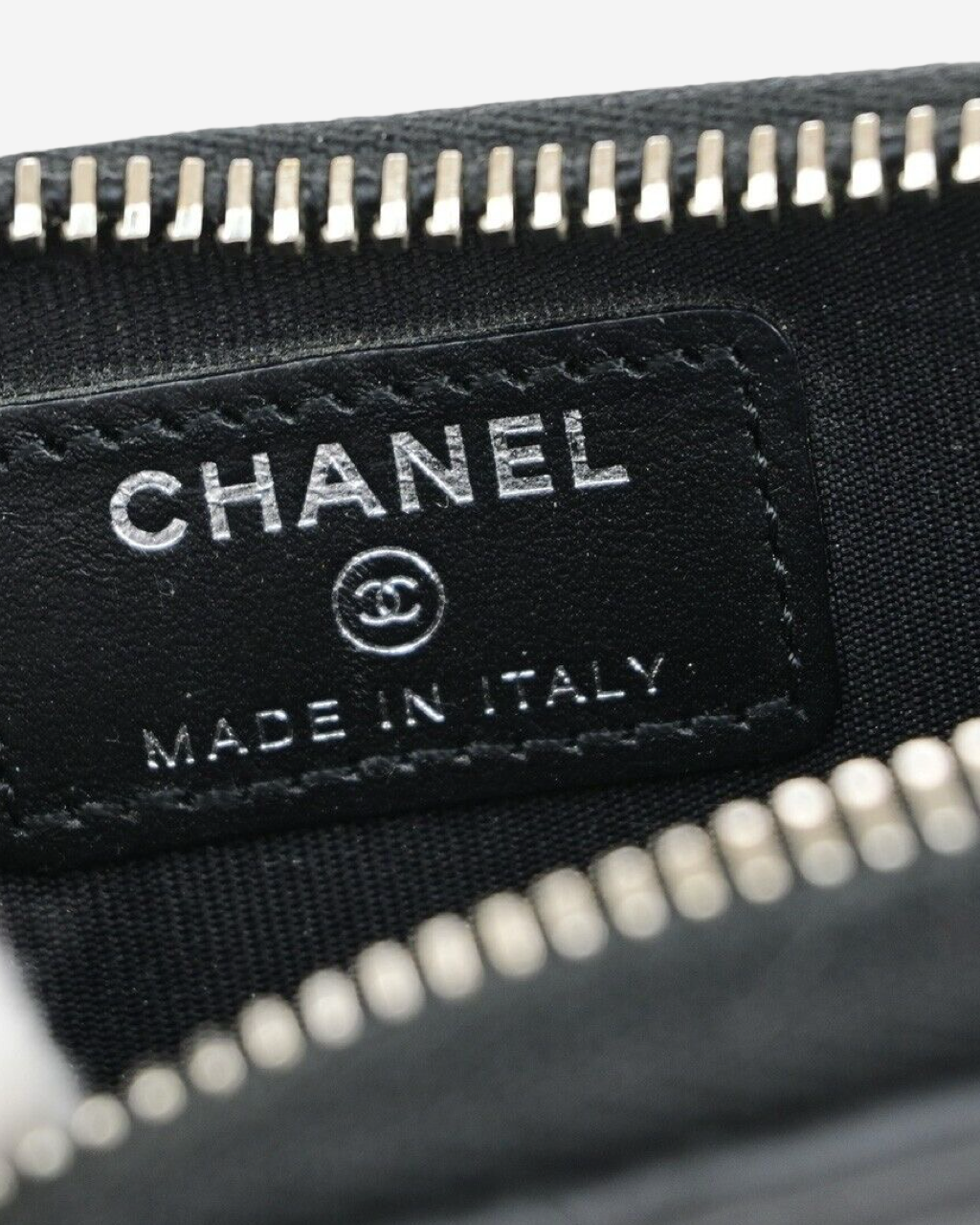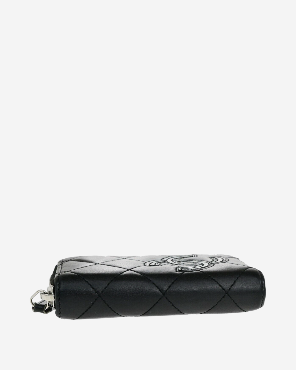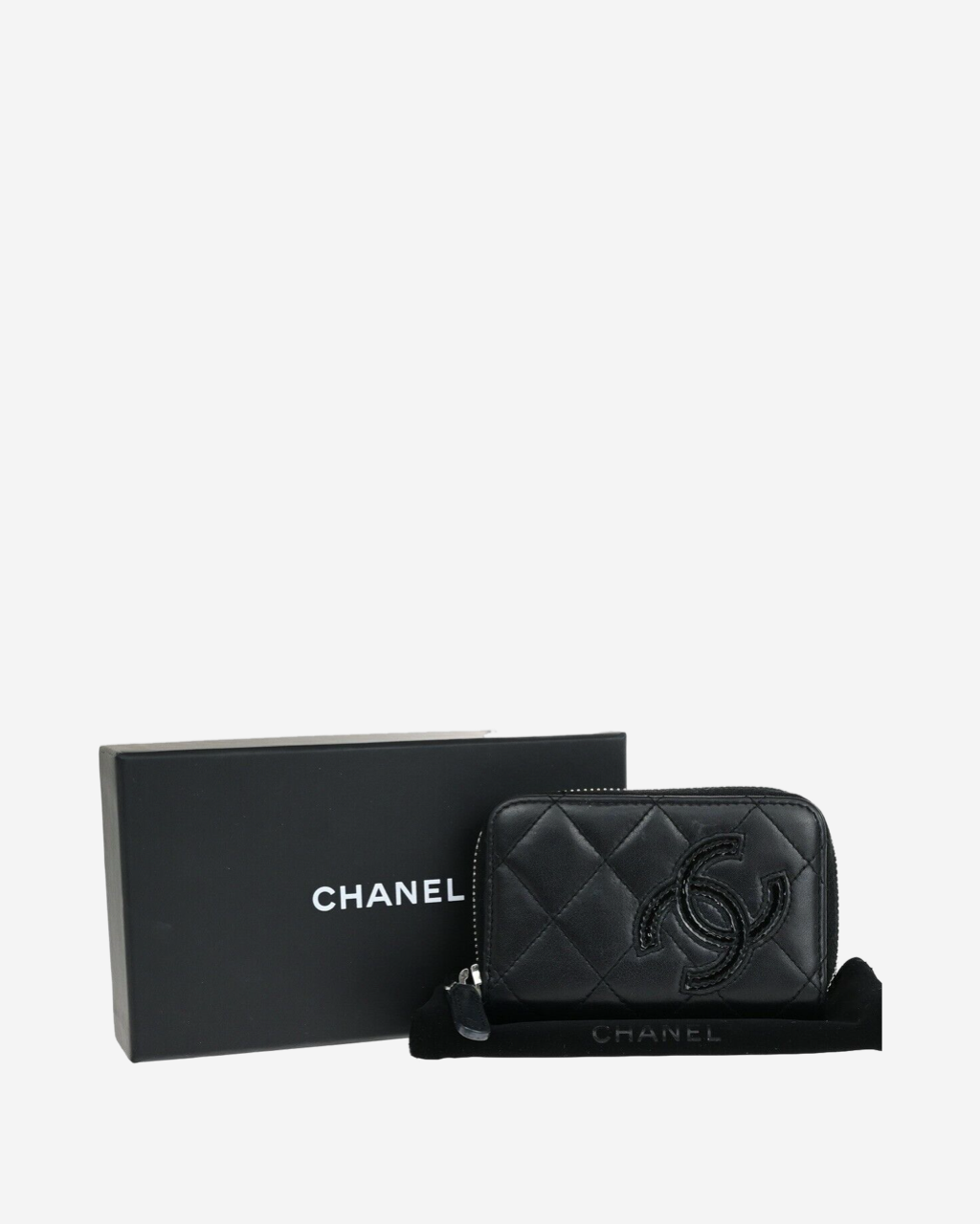 - Descripción: Cartera en piel color negro con lgo CC en charol, cierre al tope, compartimento para tarjetas, hardware color plateado
