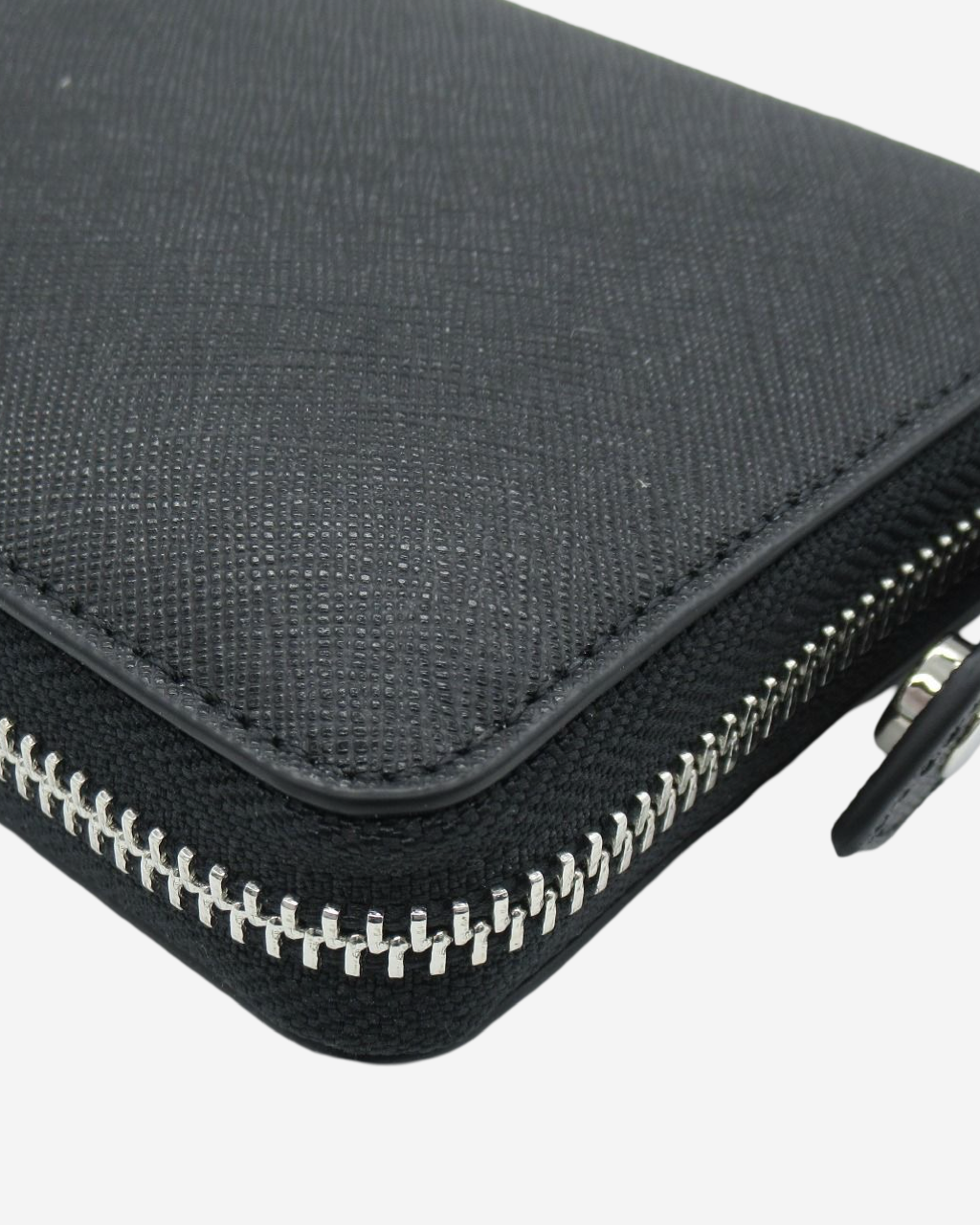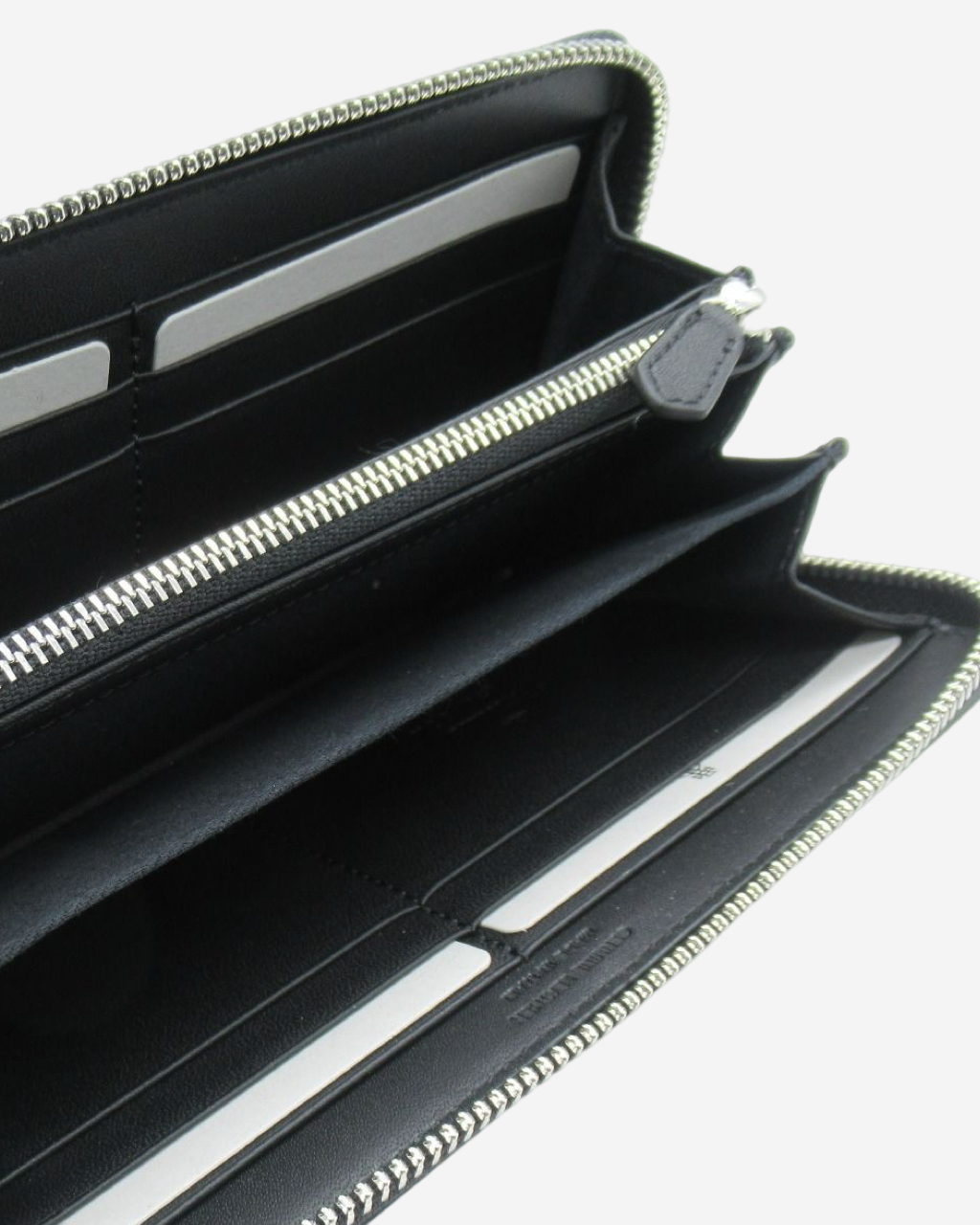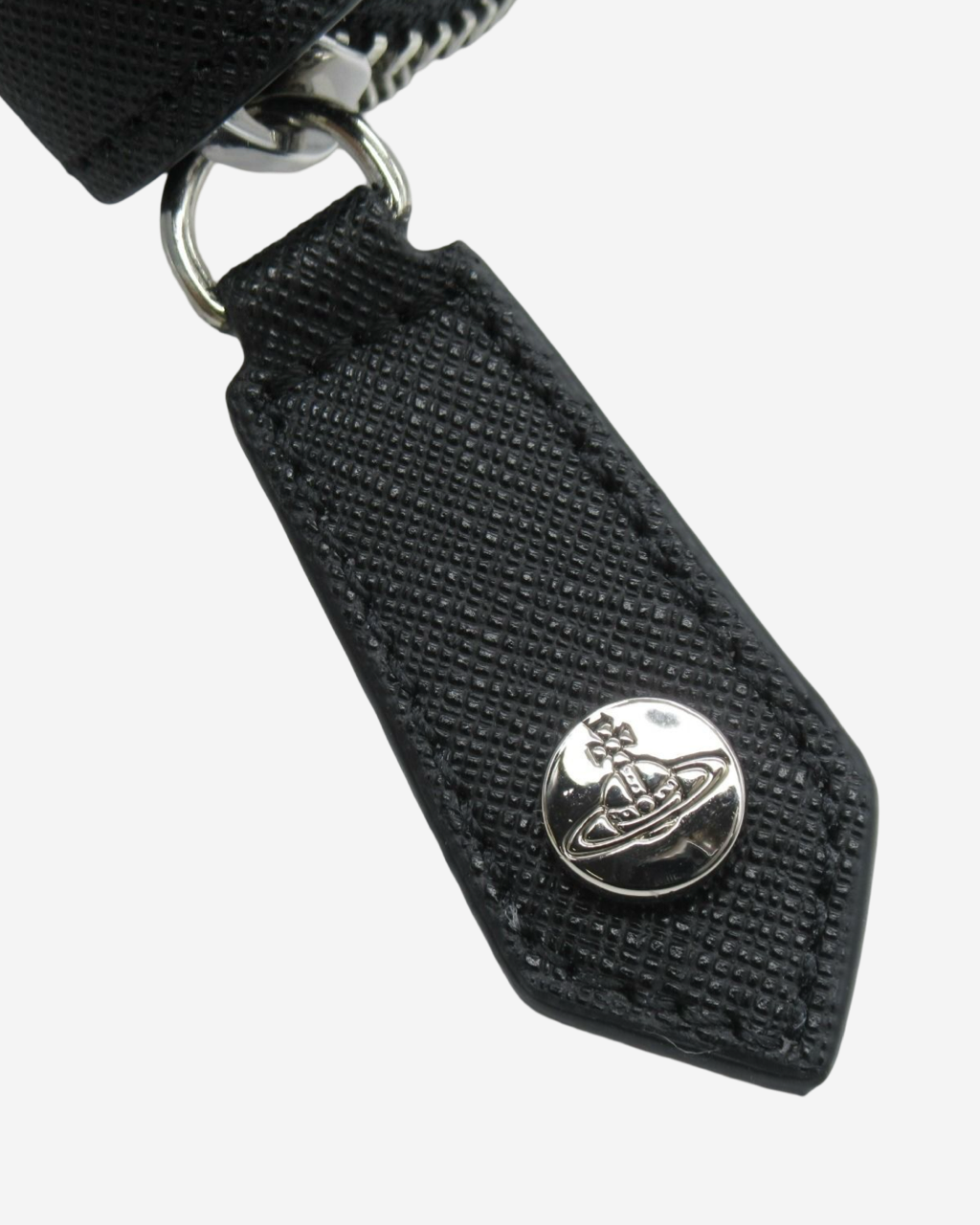 - Descripción: Cartera Vivienne Westwood bifold en piel color negro efecto charol, logo central característico, compartimento para tarjetas y billetes, hardware color negro