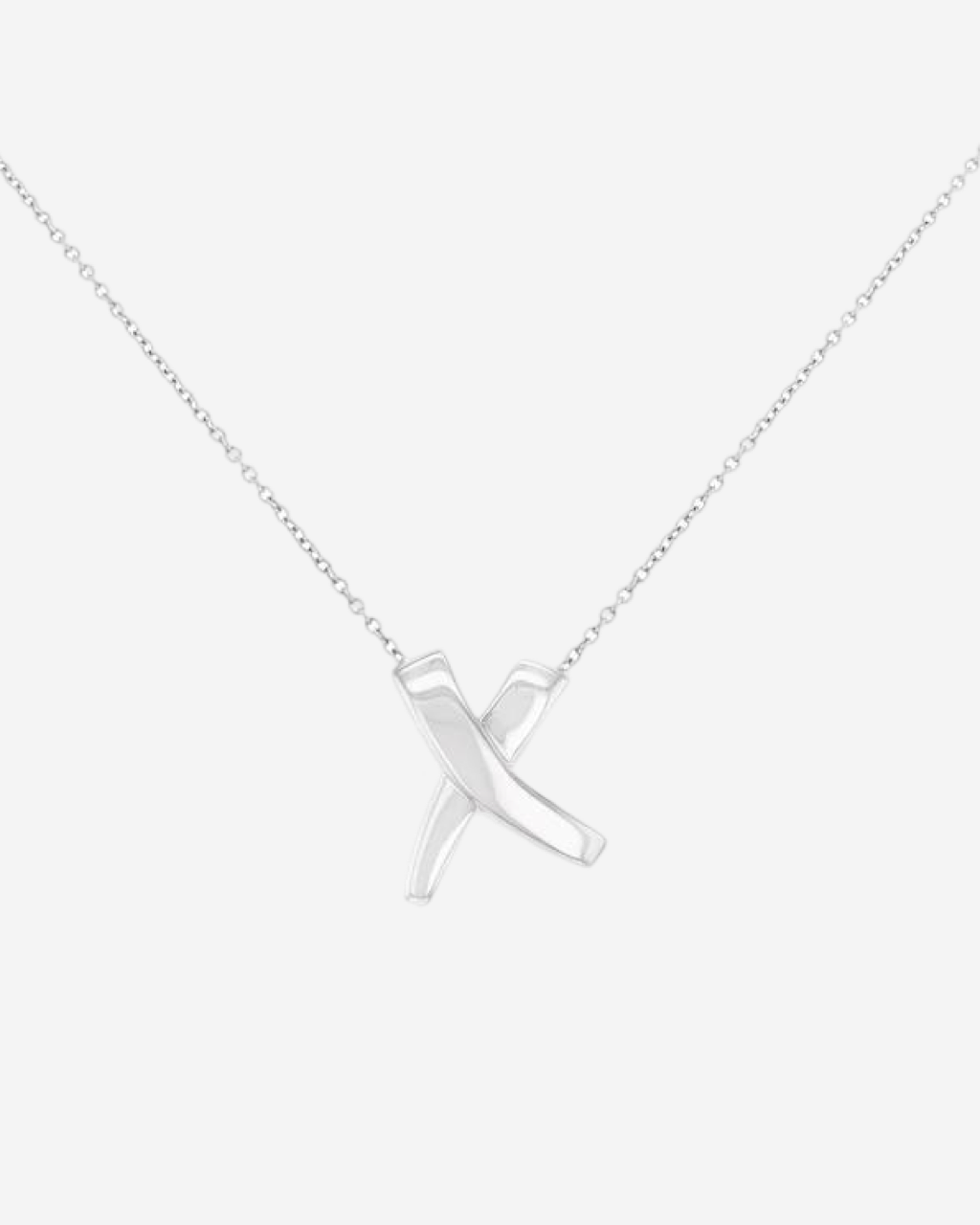 - Descripción: Collar con dije en forma de x, cadena delgada, broche de langosta
