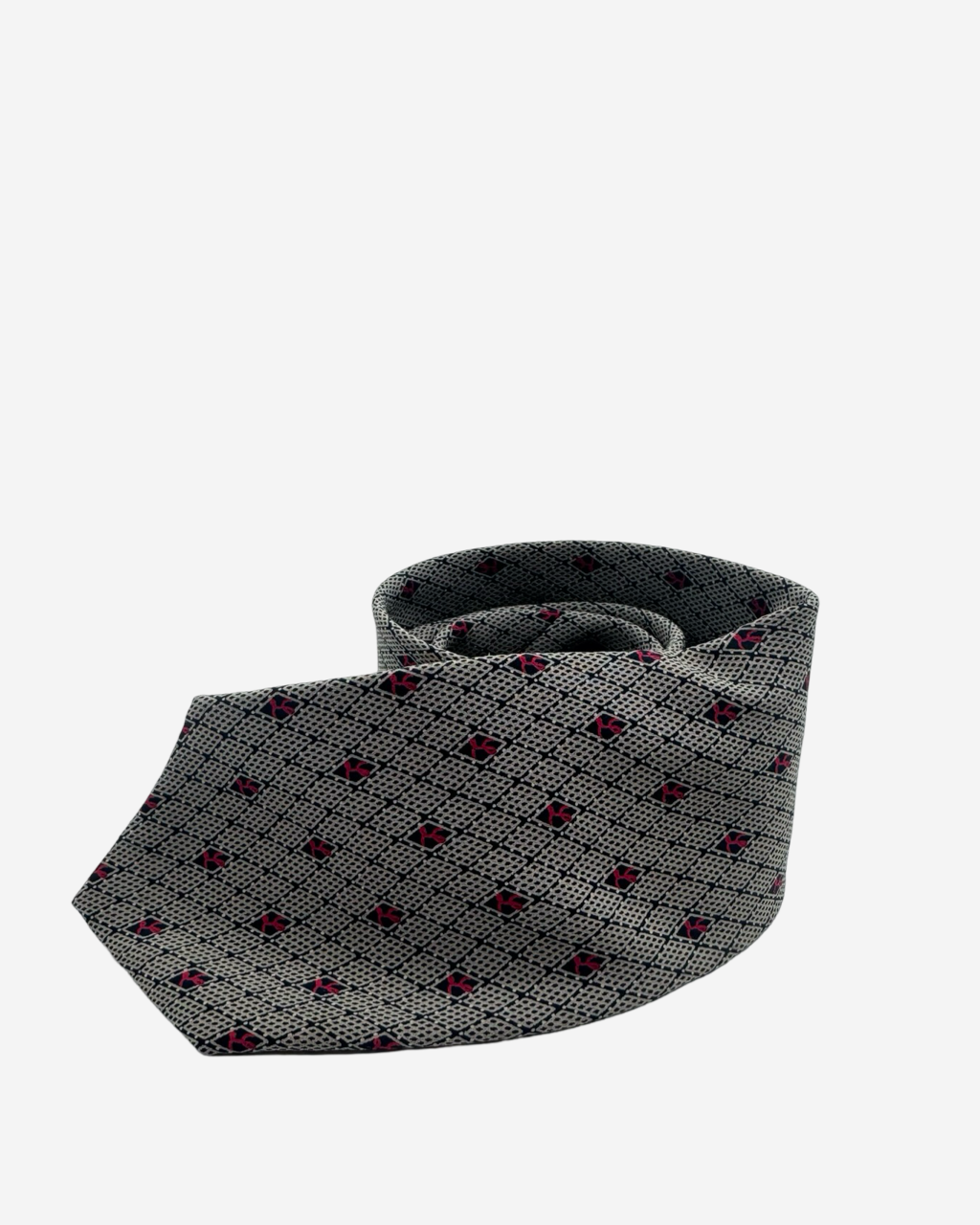- Descripción: Corbata Loewe en color plateado con motivo de L característico en color rojo