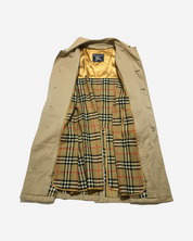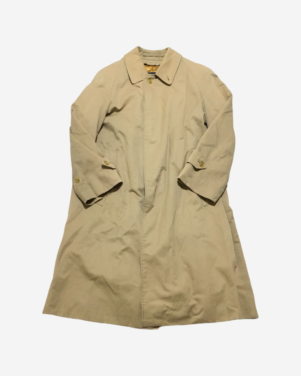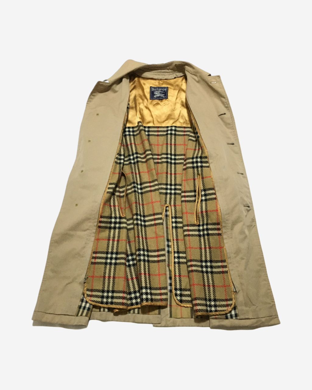 - Descripción: Gabardina con ajuste en botones y cinturón, cuello con planes, manga larga, dos bolsillos laterales, largo medio