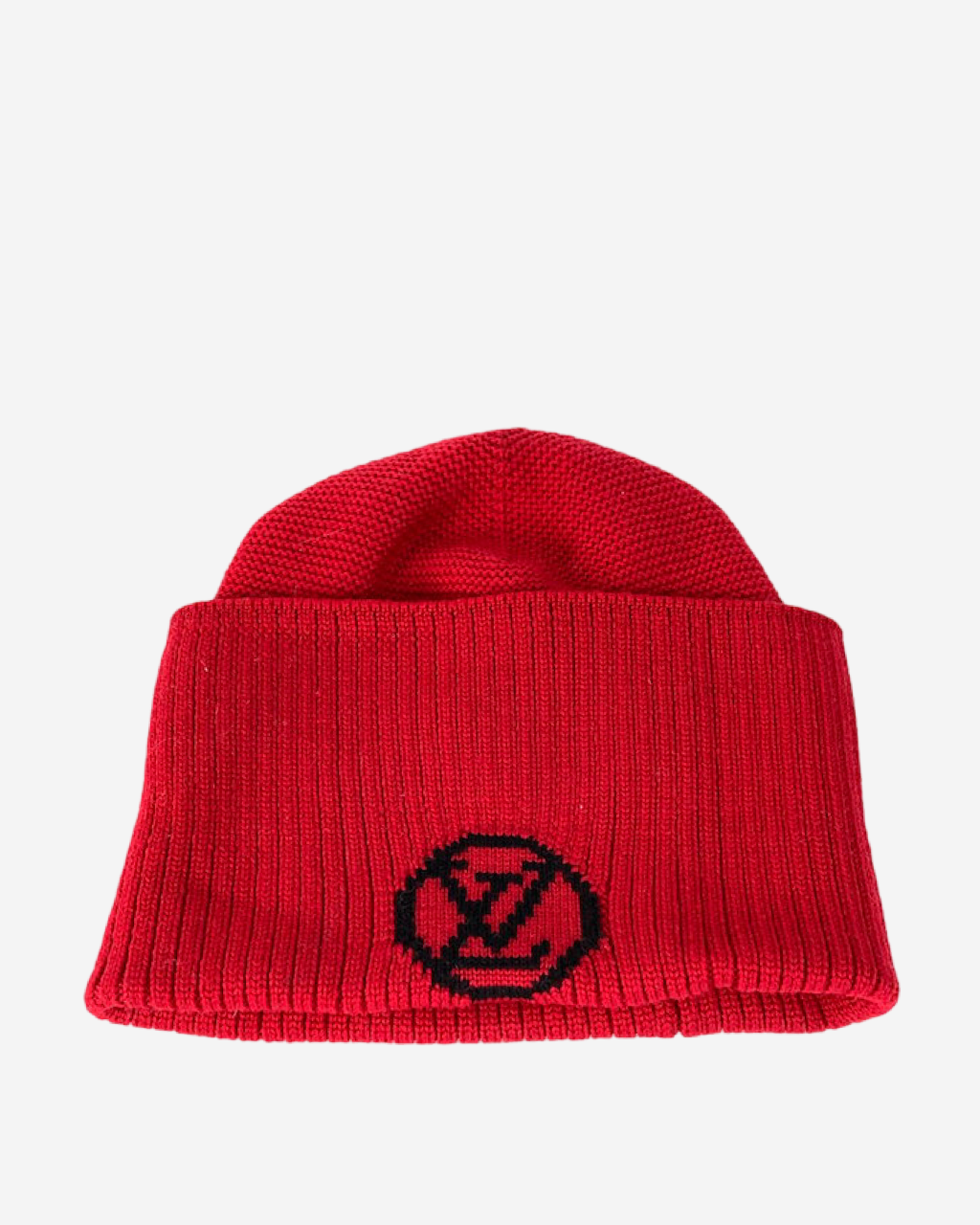 • Descripción: Gorro Louis Vuitton en lana color rojo, logo LV característico frontal, corte redondo