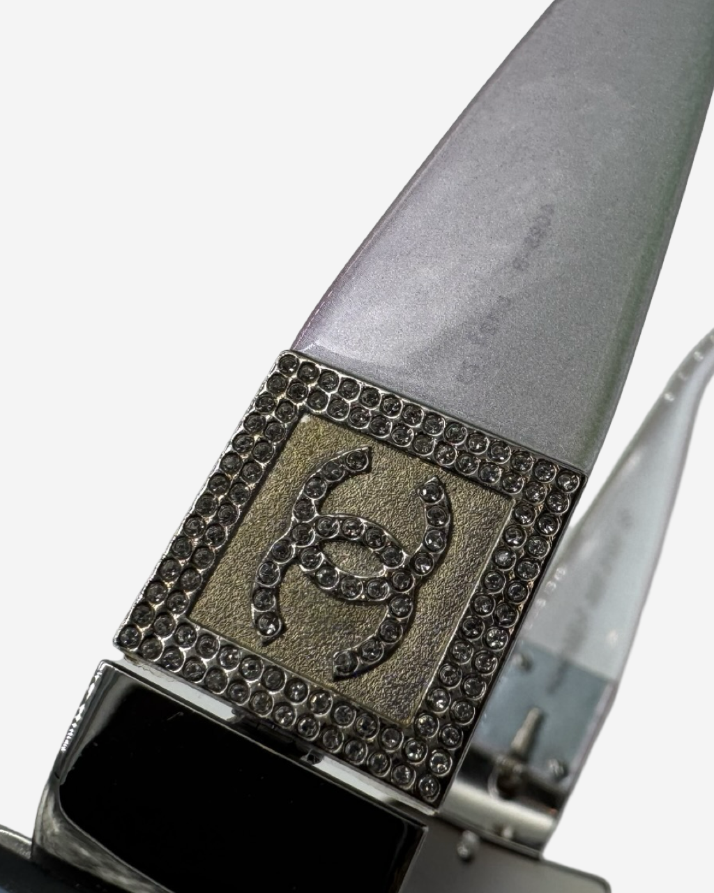 - Descripción: Lentes de Sol en plástico transparente e iridescente, logo CC característico en los laterales, hardware en tono plateado