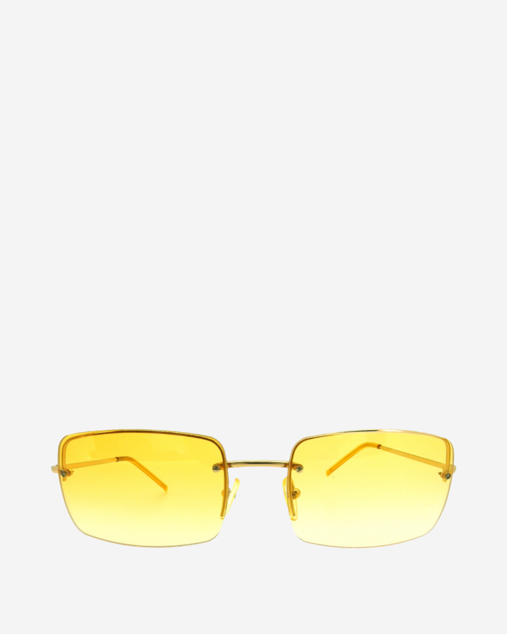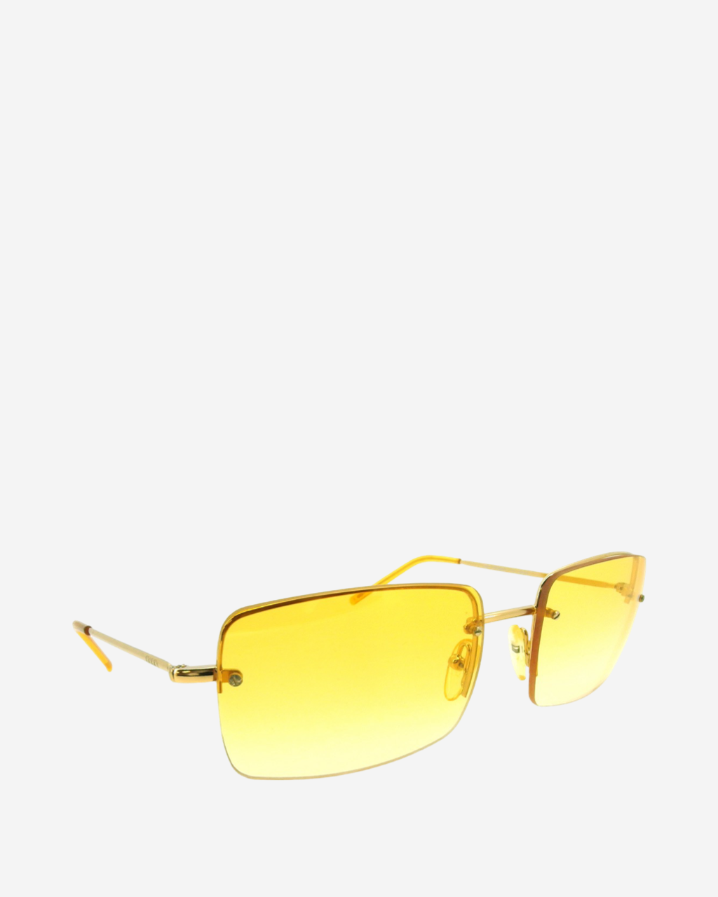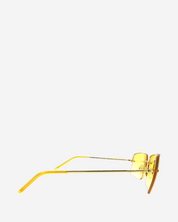 - Descripción: Lentes de sol en acero en color dorado con micas en color azul, forma rectangular