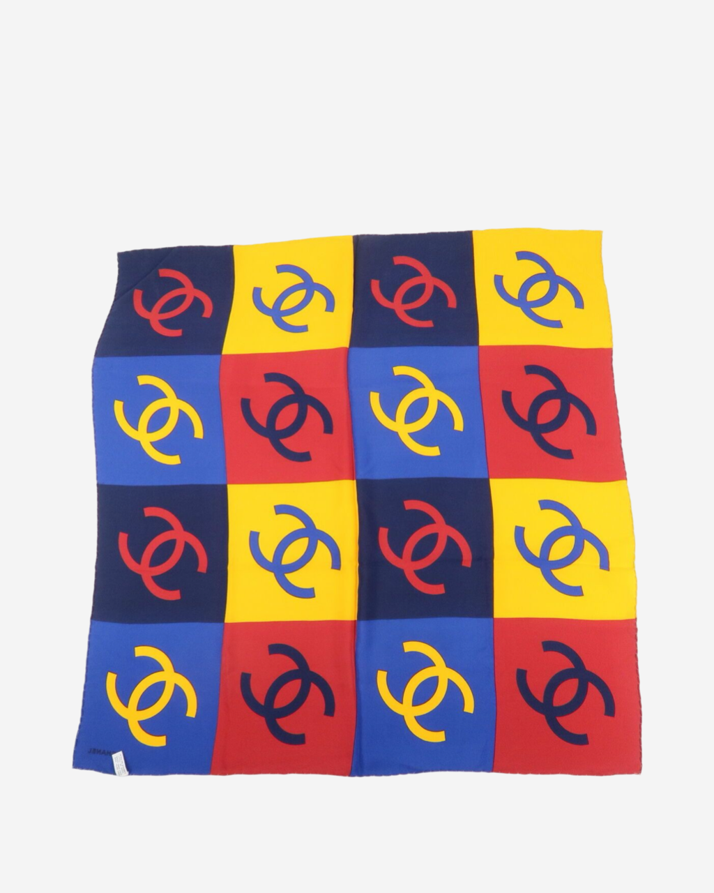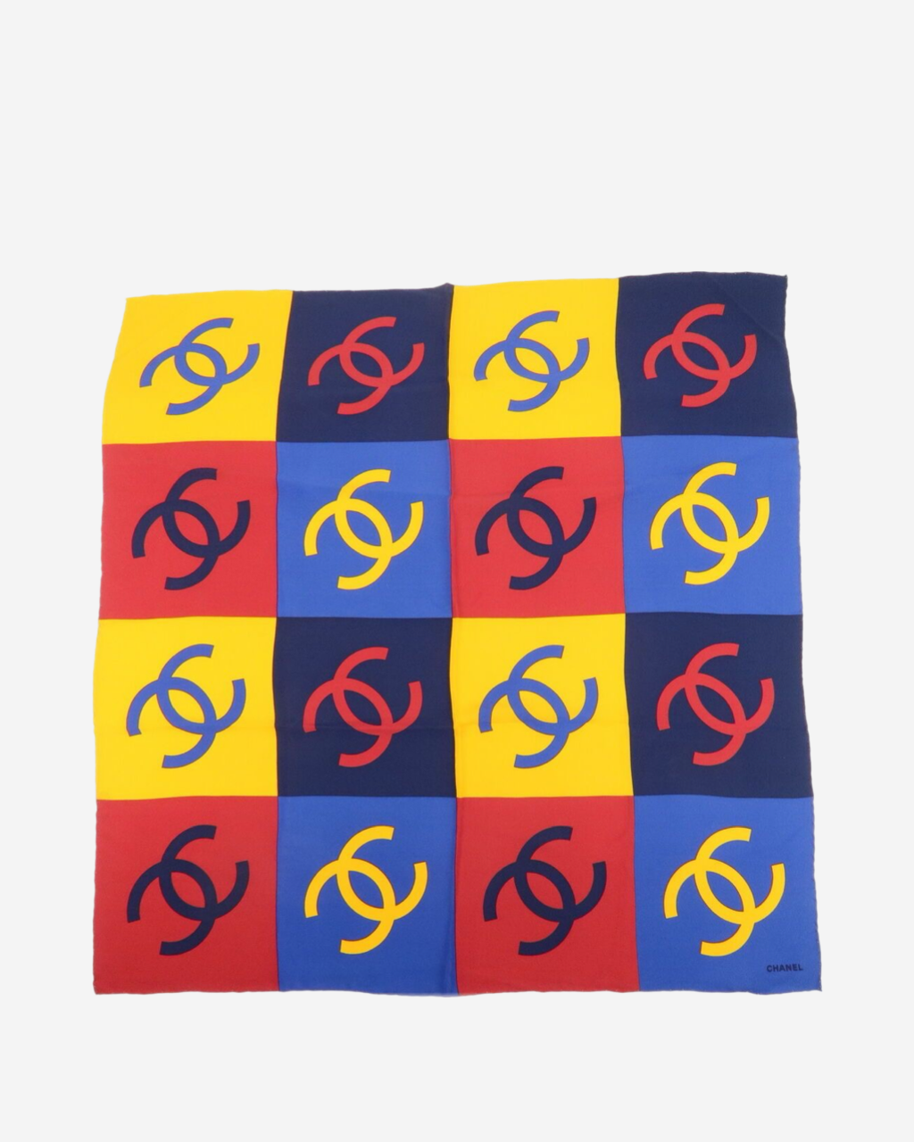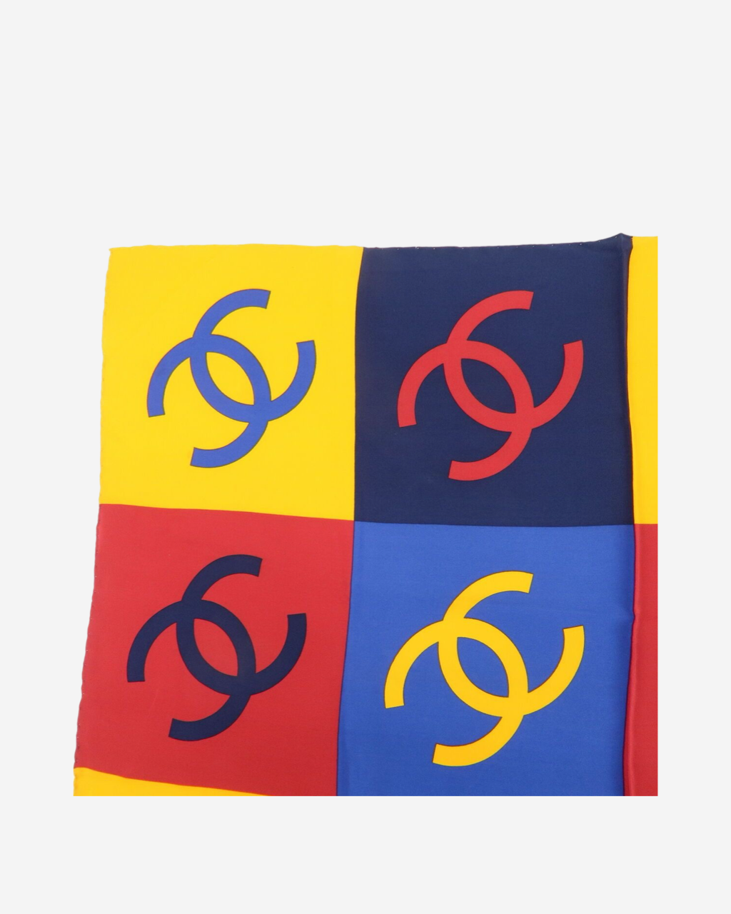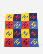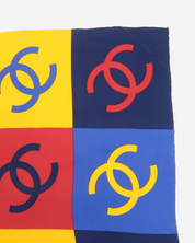- Descripción: Mascada cuadrada con logo CC característico, color amarillo, azul y rojo