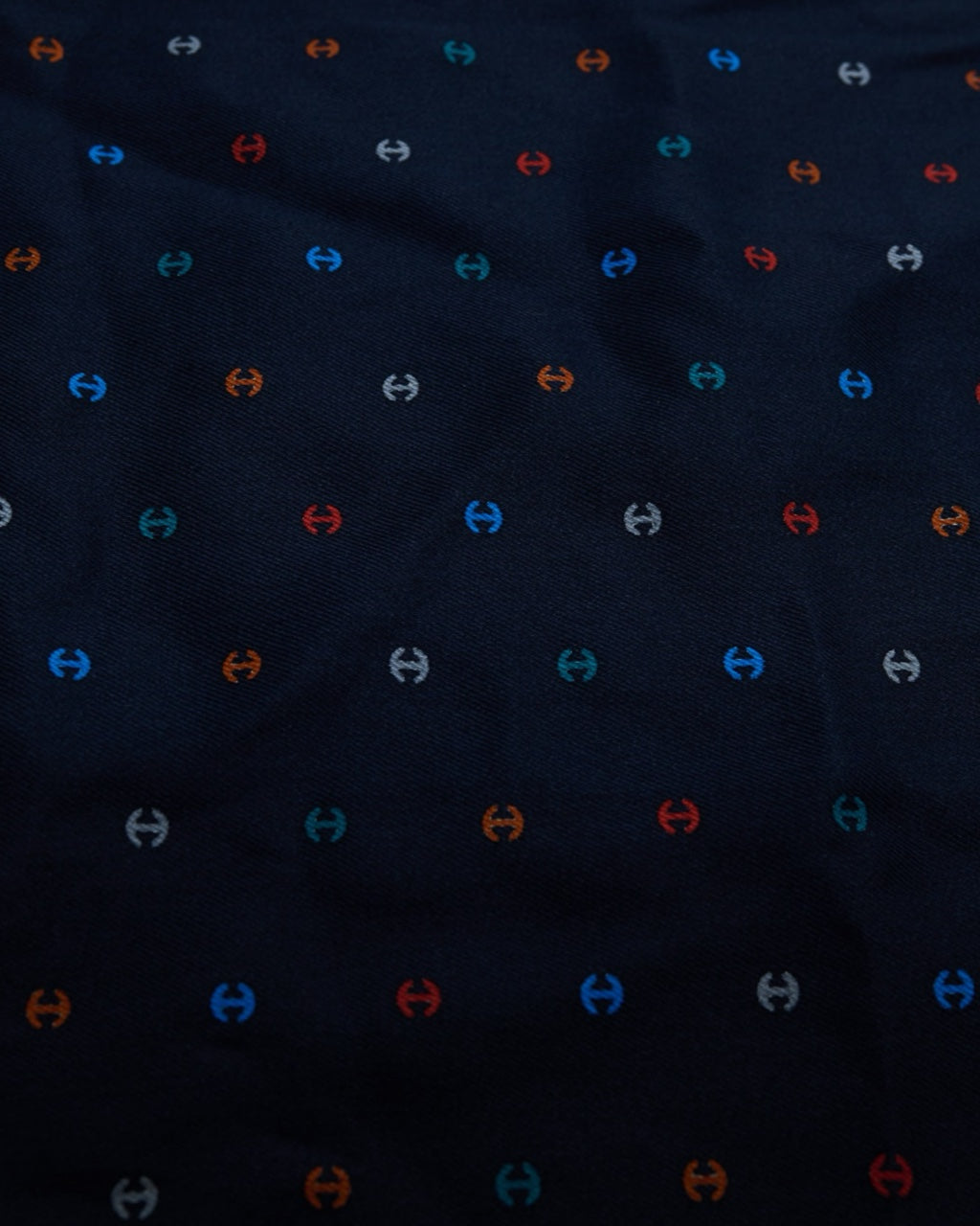 - Descripción: Mascada Hermés en seda, motivo con 'H' características, contorno en color naranja, logo en la parte posterior