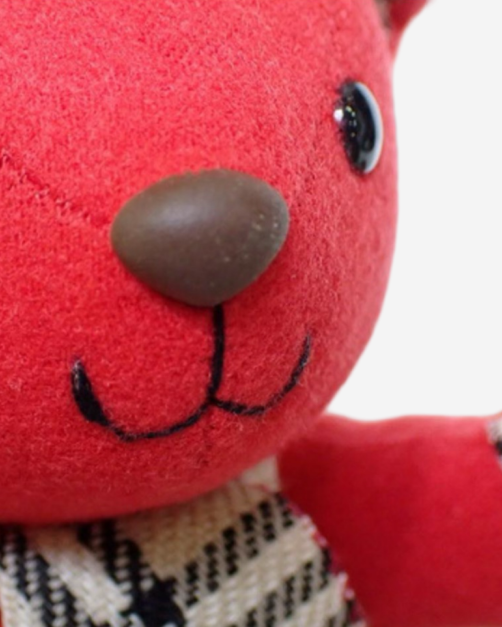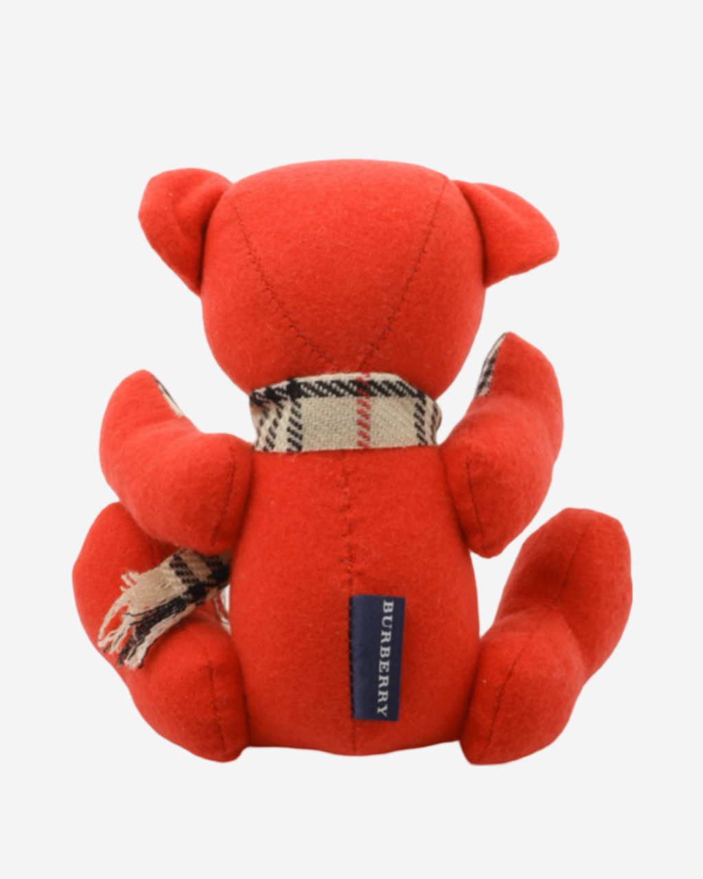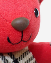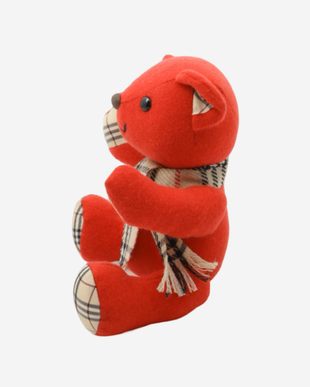 • Descripción: Oso de peluche en algodón color rojo con detalles en print nova check característico de la marca y bufanda