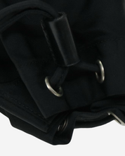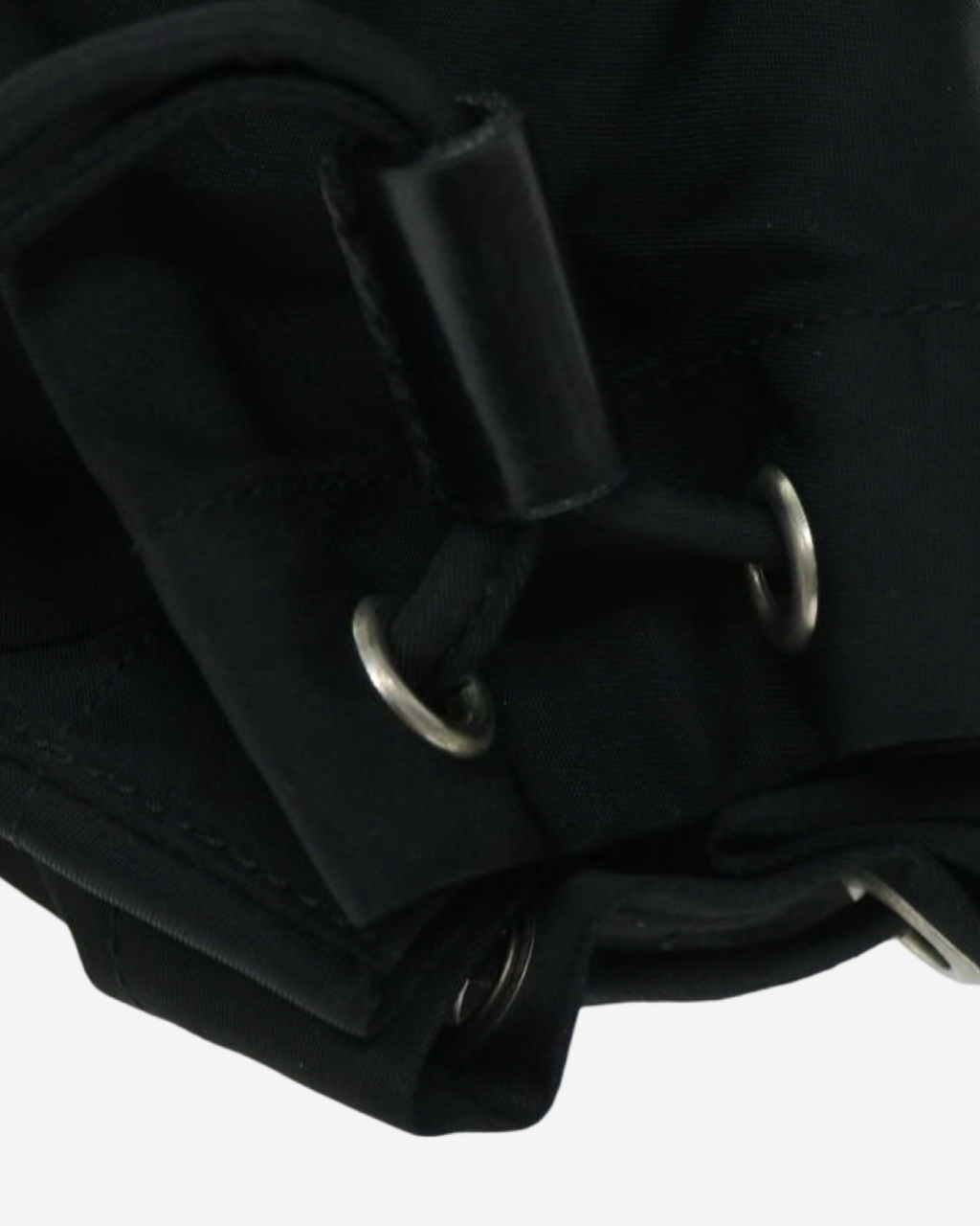 - Descripción: Pouch con correa ajustable, interior en nylon, placa frontal característica, hardware plateado