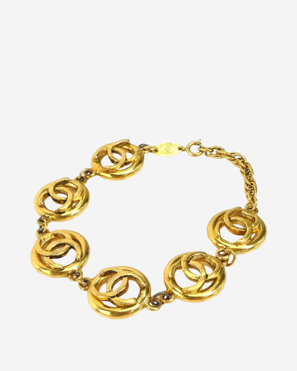 - Descripción: Brazalete en cadenas con logo CC característico, broche de langosta