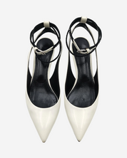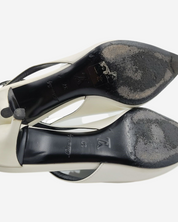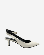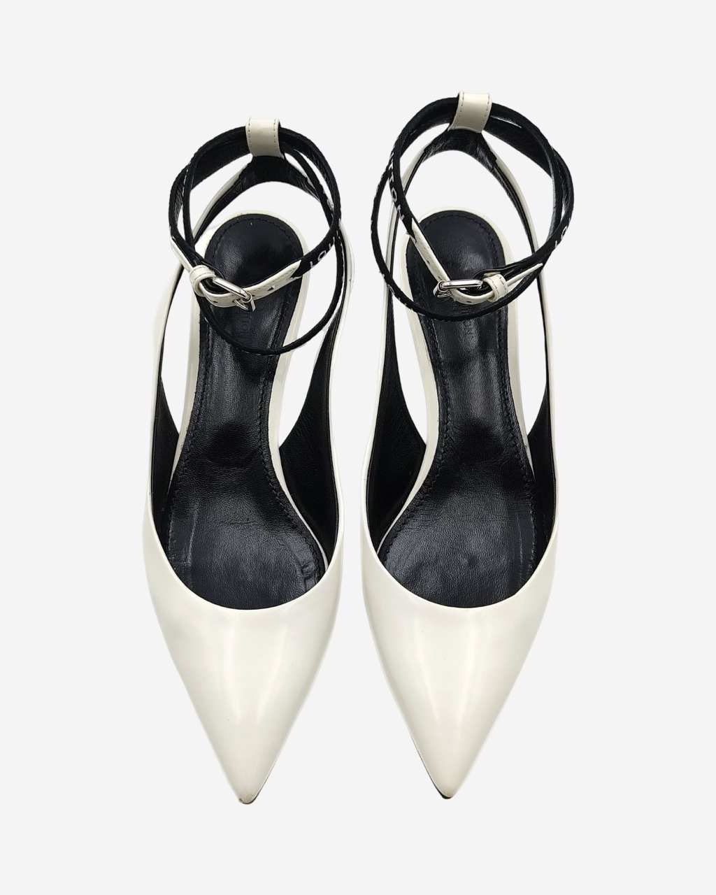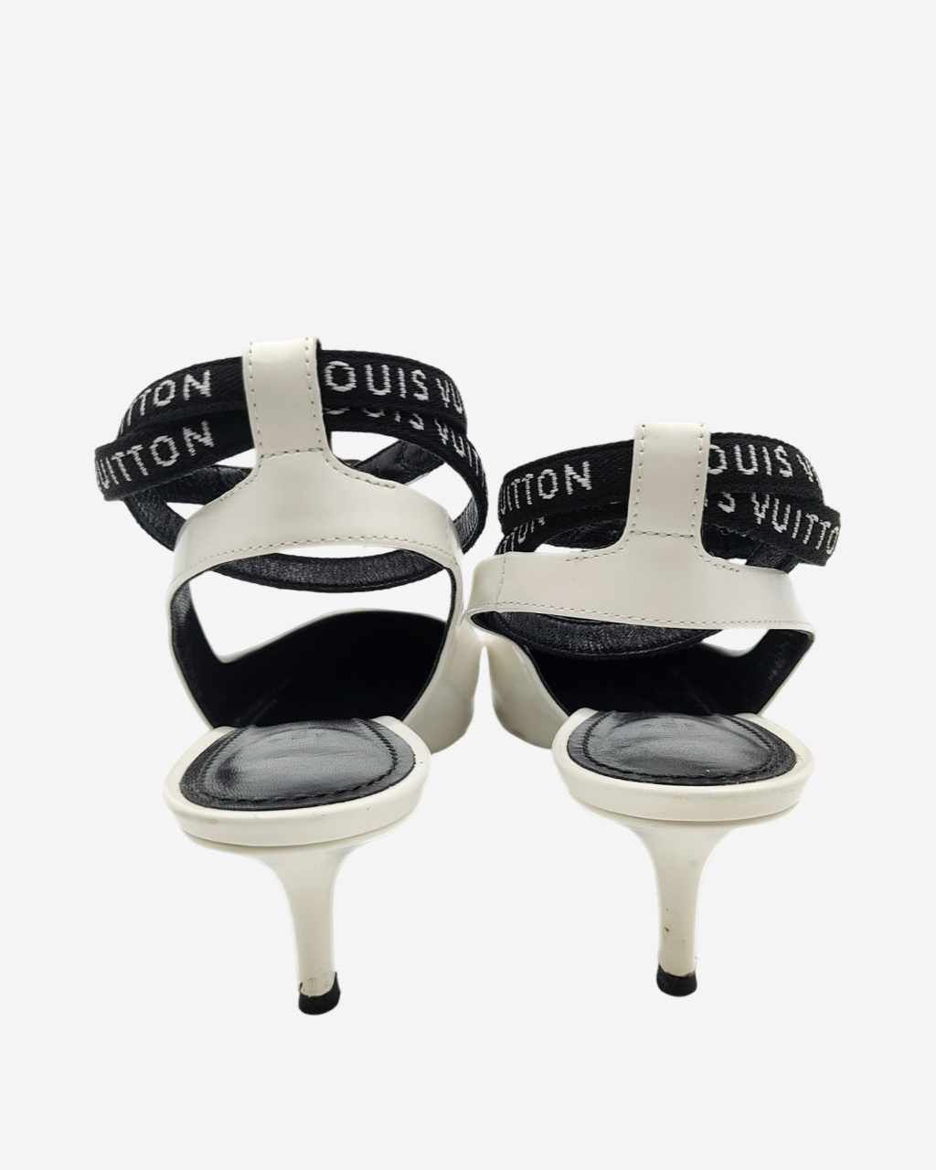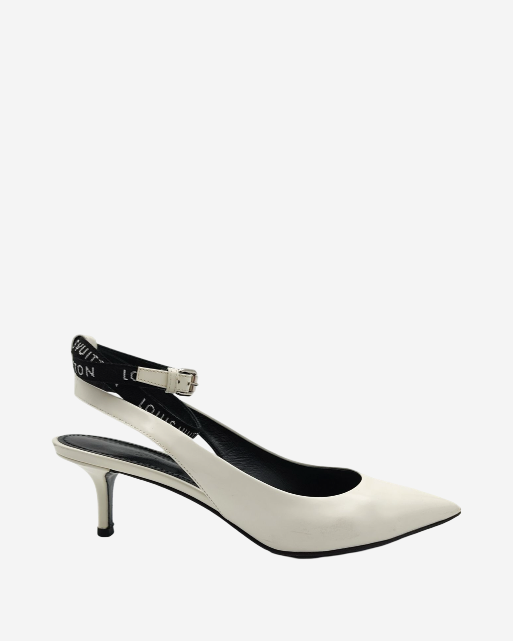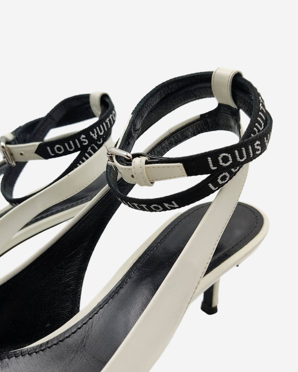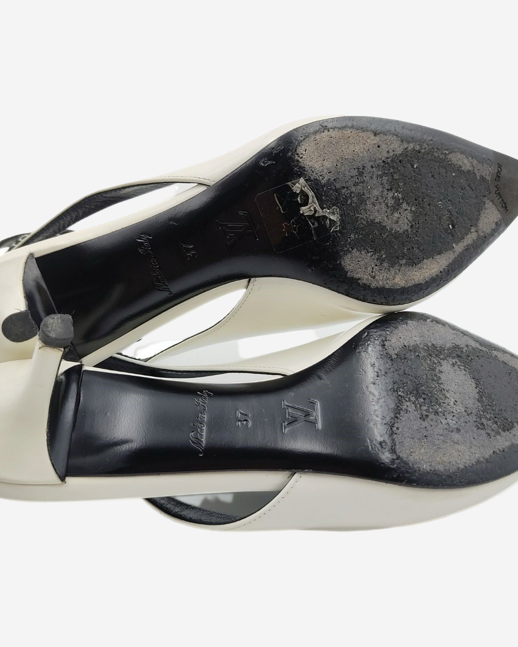 - Descripción: Slingbacks Louis Vuitton en piel color blanco con ajuste en el tobillo, puntera puntiaguda, tacón de aguja