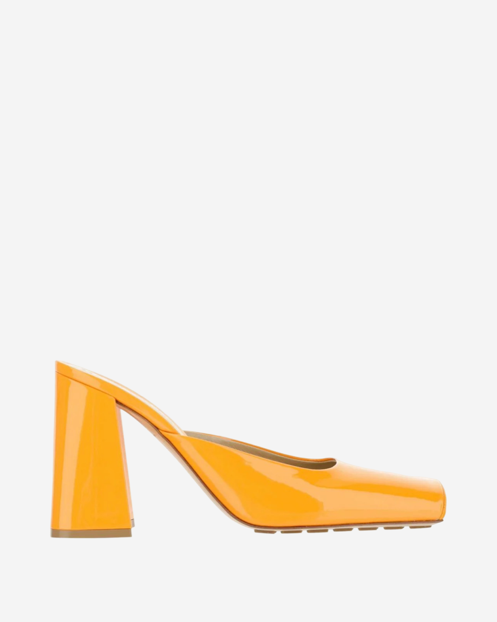 - Descripción: Mules con taccón en charol, puntera cuadrada, tacón ancho,