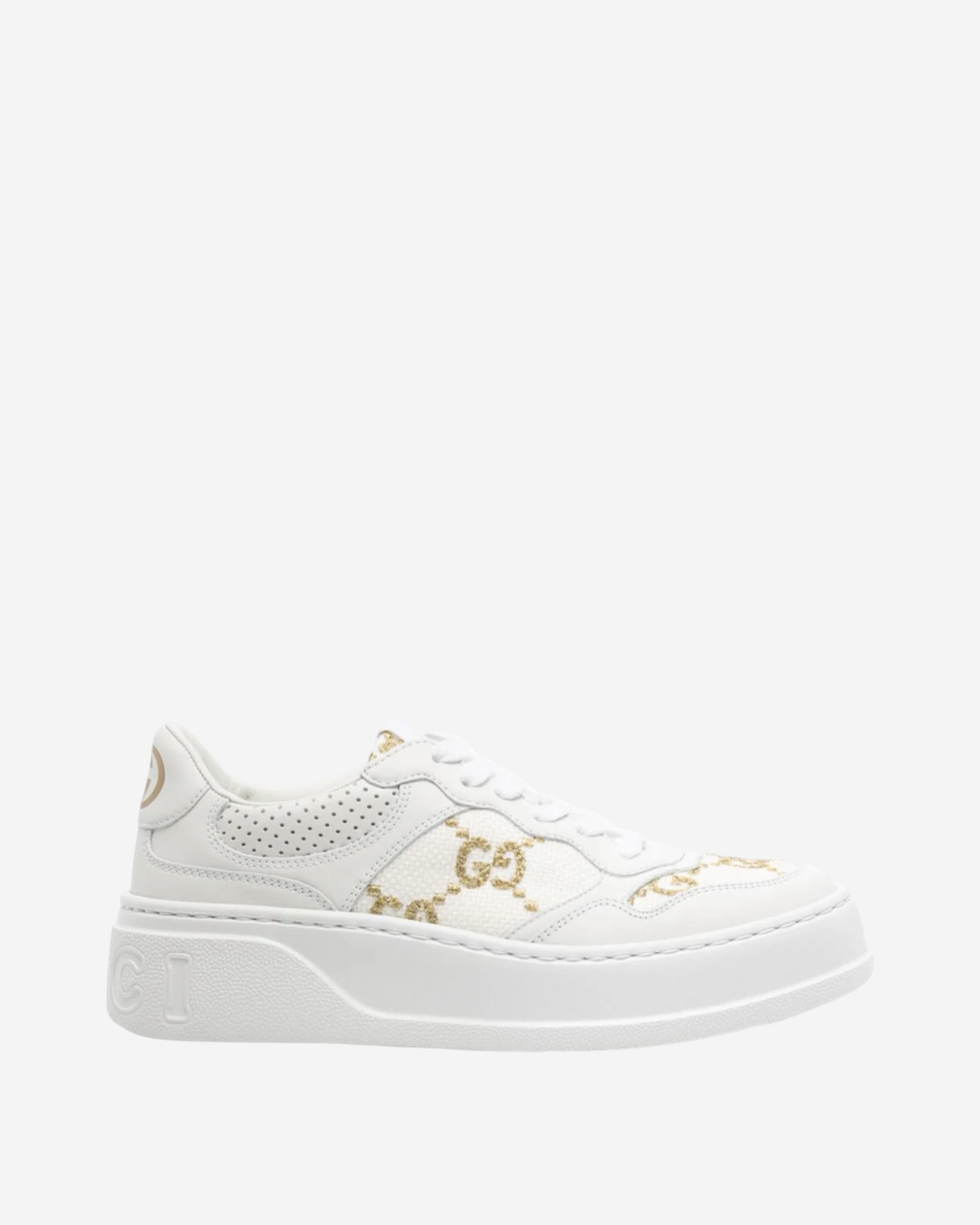 • Descripción: Tenis de plataforma en piel color blanco, detalle de cavas con print GG en color dorado, suela de goma con grabado gucci cracterístico