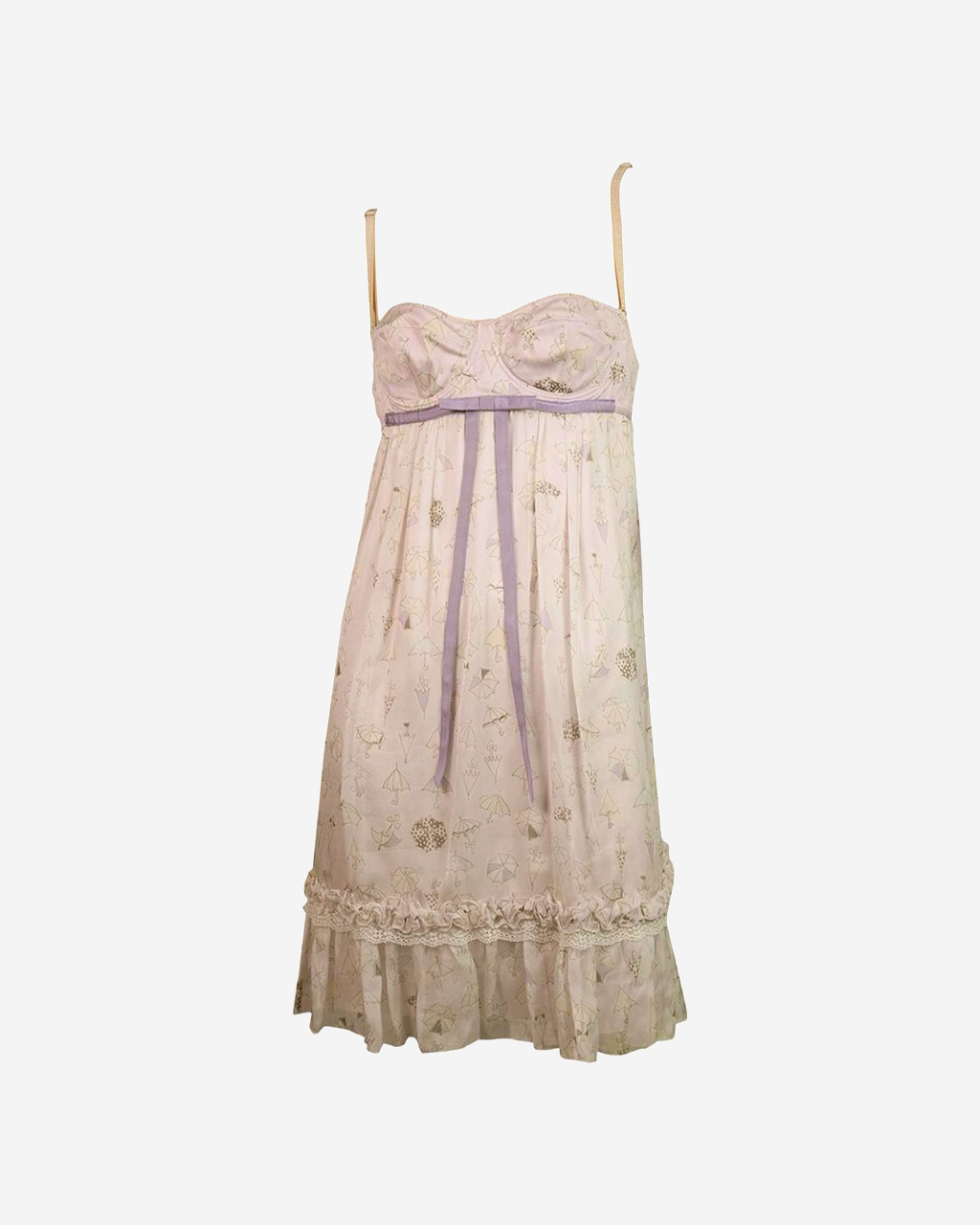- Descripción: Vestido lencero en algodón color rosa con detalle de moño en satín frontal, tirantes ajustables, corte mini