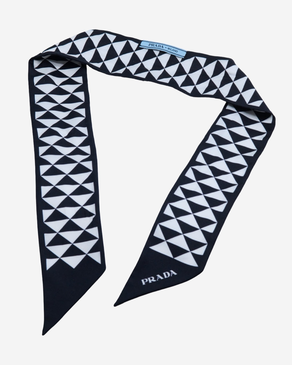 - Descripción: Bandeau Prada en color negro con print de triangulos contrastantes en blanco
