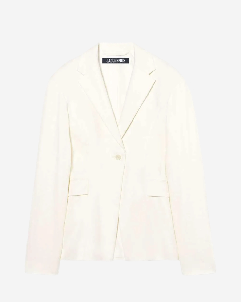 - Descripción: Blazer en color blanco, cuello italiano, manga larga, ajuste con botín, bolsillos laterales