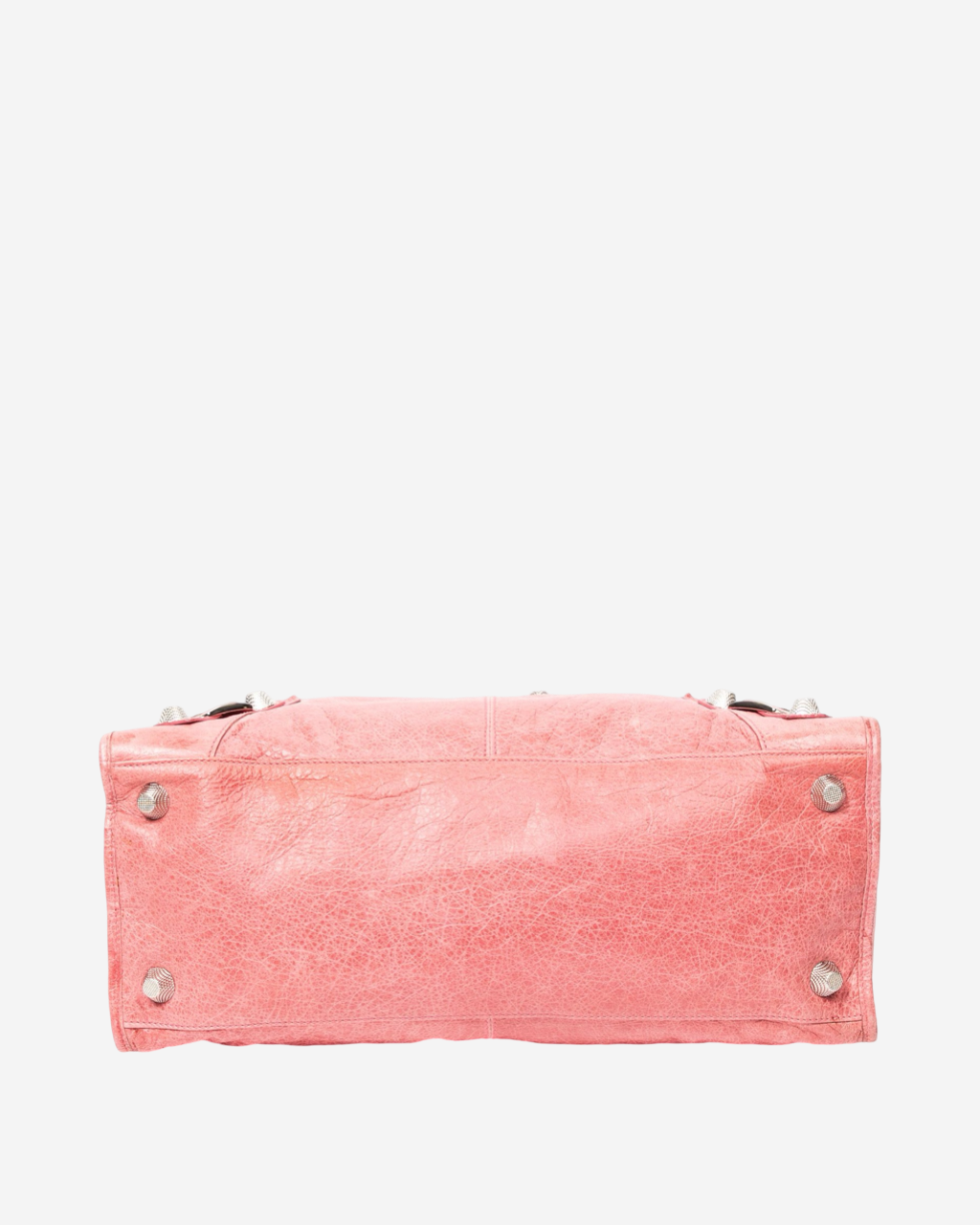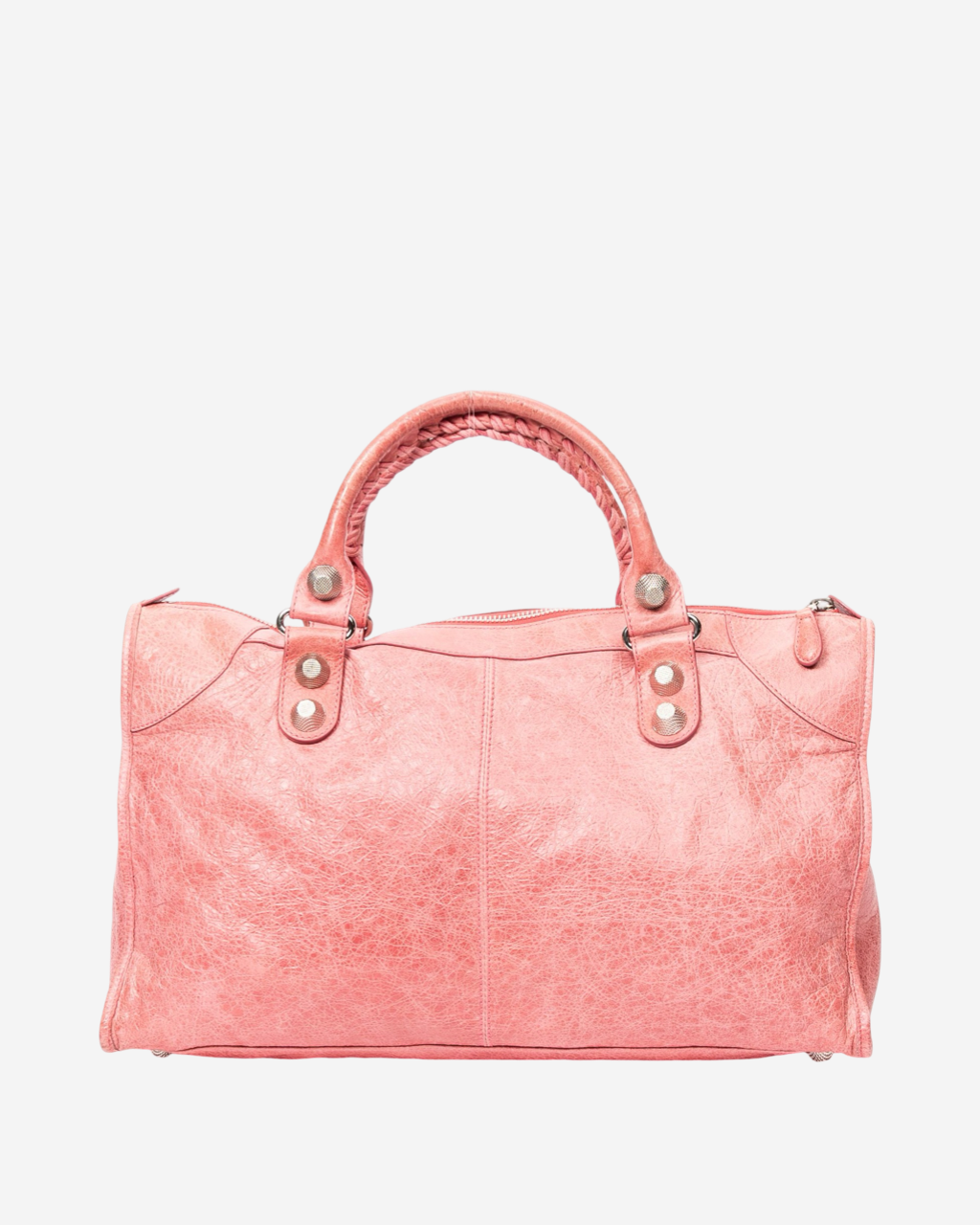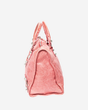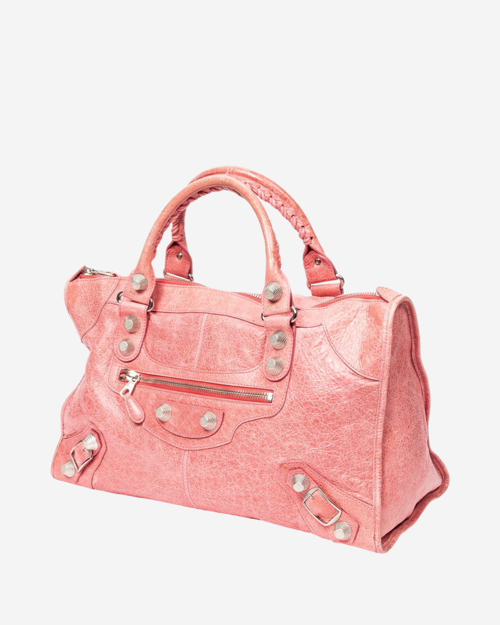 • Descripción: Bolsa de mano con donle asa fija, zipper frontal, detalle de studs, cierre al tope, hardware efecto envejecido, forro interior textil
